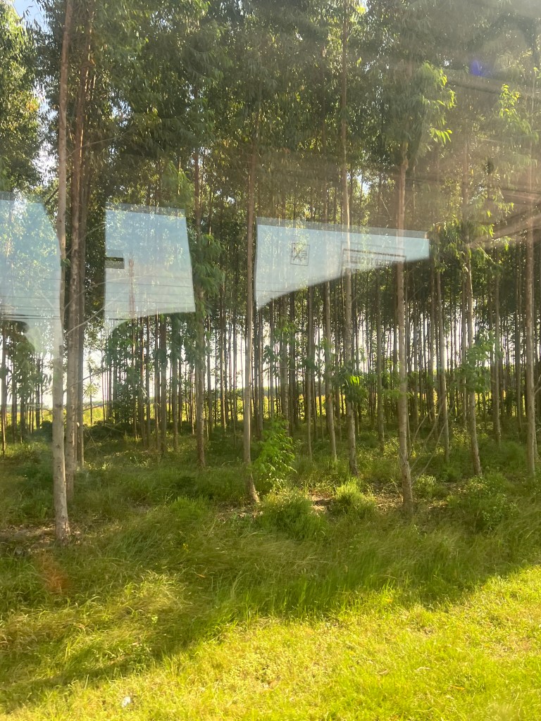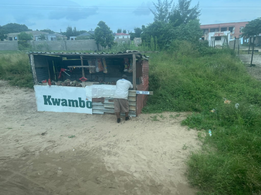 Our guide was Emanuel and he was very proud of his Zulu heritage. He told us a lot about the country on our one hour trip to the river. the. population of this area of South Africa is 11.5 million and about 80% are Christian, largely due to the influence of missionaries over the years. Many people still practice the local religions secretly. Unemployment is high, it was as high as 40%, now it is more like 31%. A huge export is eucalyptus wood. In fact we saw miles of trees during the bus ride – all planted there – they are not natural to the area,they were first planted here in 1870. We also saw many avocado trees. Along the road, you see lots of small structures where people sell the products that they grow on their own land to make some money as there are no jobs for them.