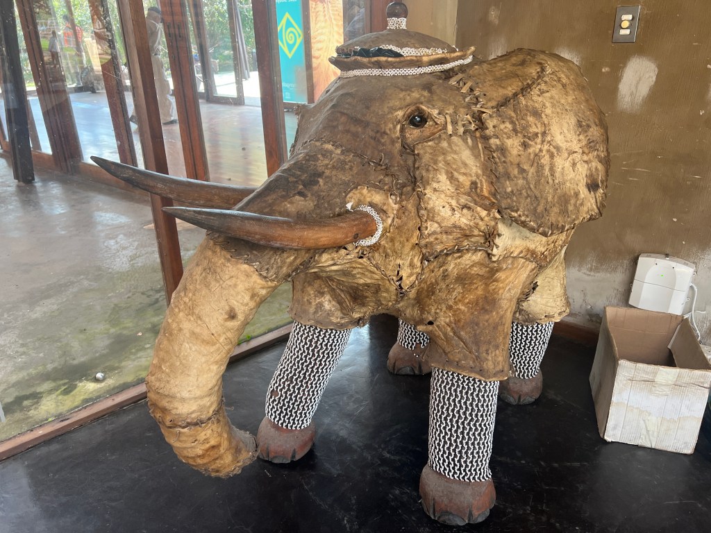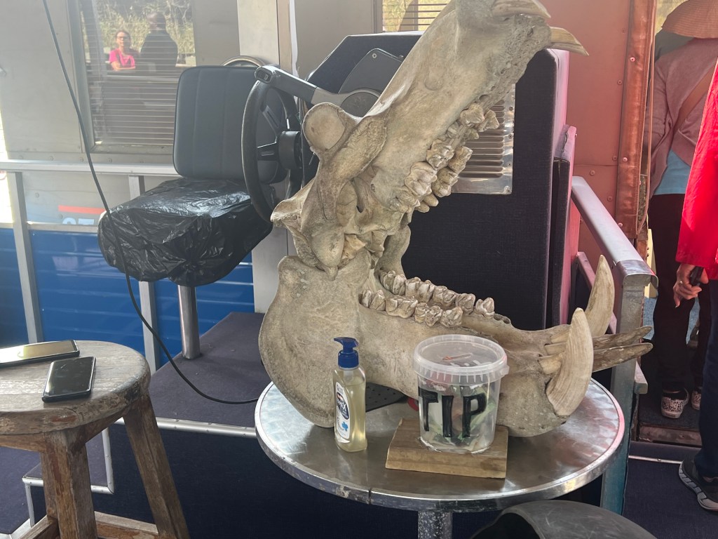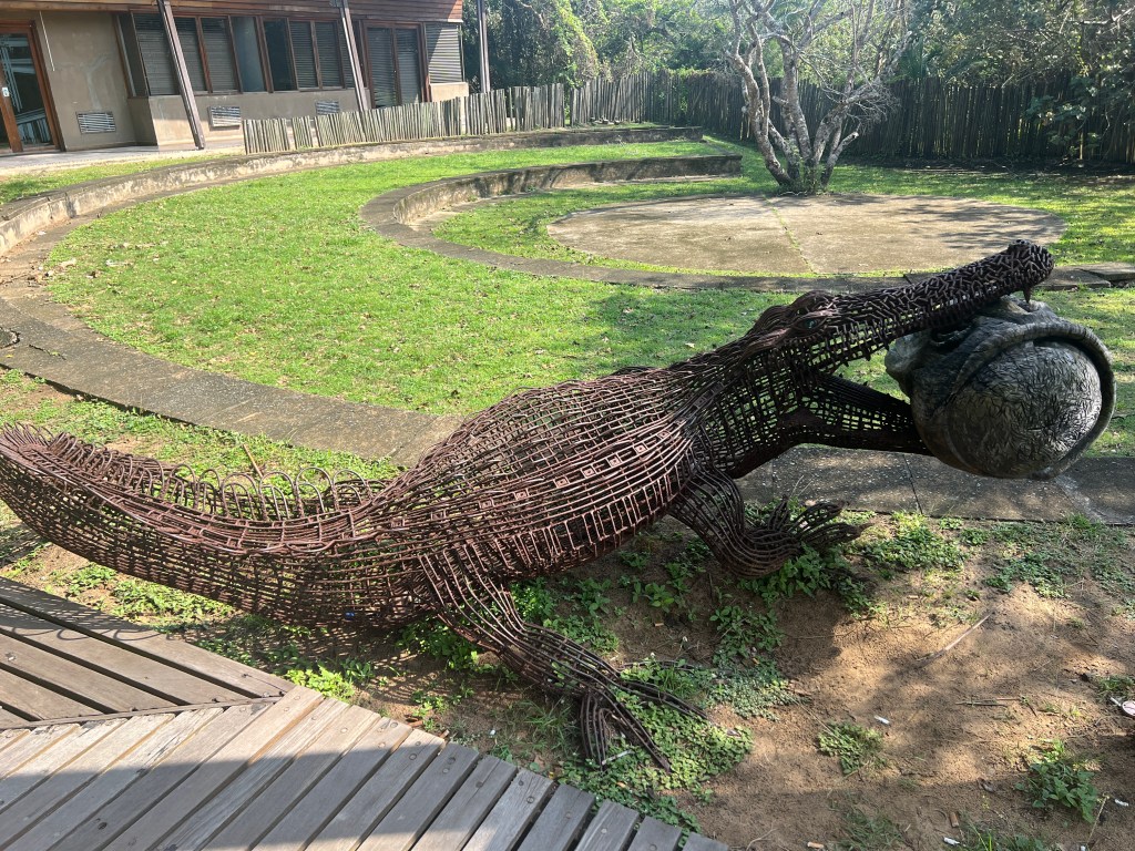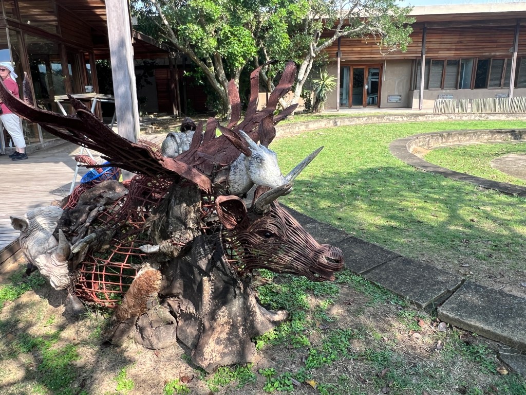 There were some interesting art pieces and a mosaic walkway – and a hippo skull on display in the boat.