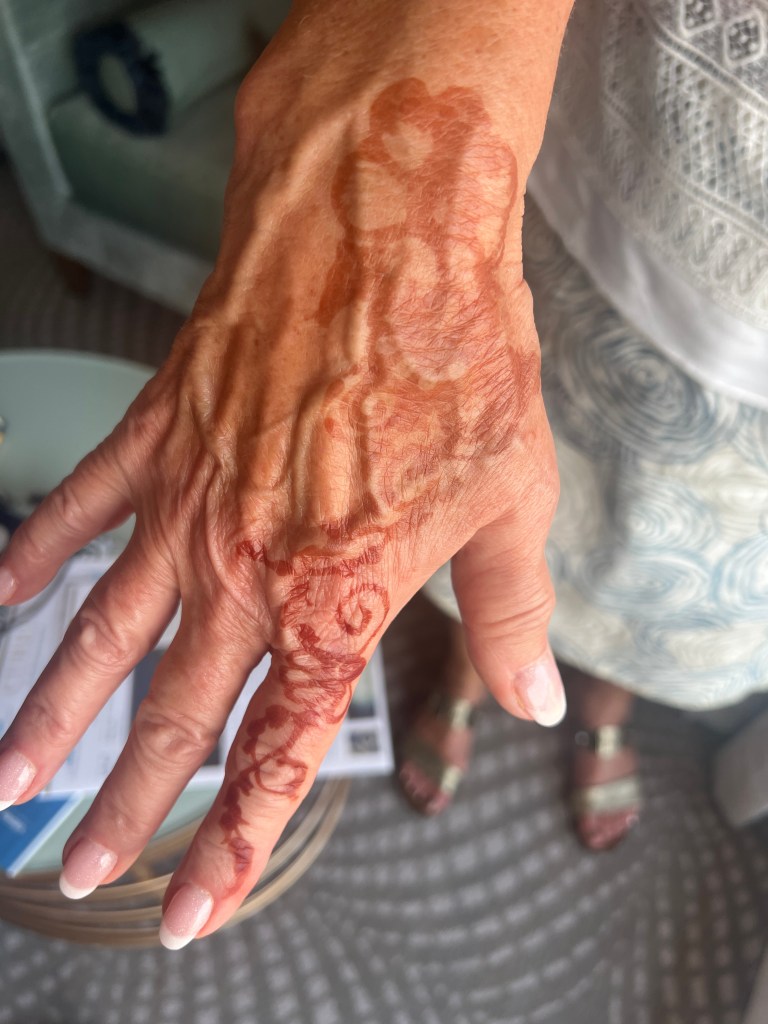 My henna got smudged when it was drying by a friend wanting to give me a high five! But it is still unique.