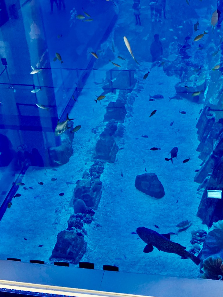 Norm took some pictures of the huge aquarium tank in the Dubai Mall. It is hard to see the beautiful sea life because of the blue, but here is one of them. The mall facing area is huge (like everything in that mall). We didn’t go into the actual aquarium.