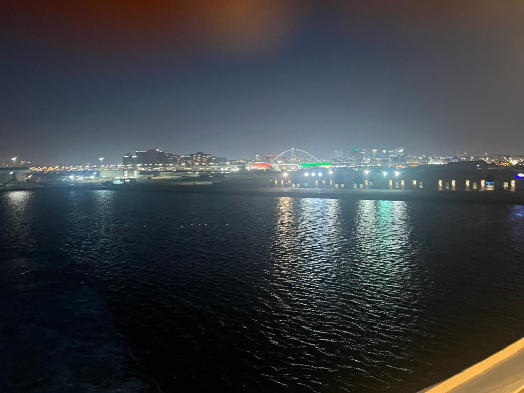 Here are some pictures as we left Dubai. It isn’t as colorful as the Hong Kong harbor, but it is still pretty.
