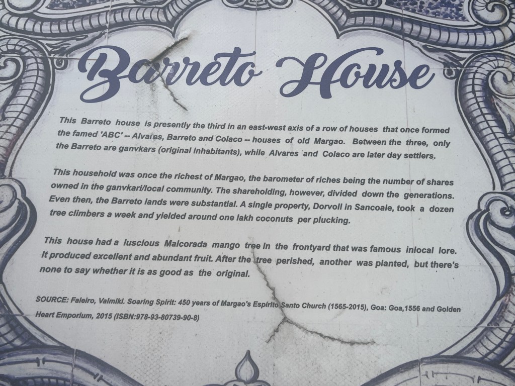 Our first actual house visit was the Today’s Grand Old Houses of Goa tour first took us to the Braganza House in Chandor. It is from the Portuguese era and is approximately 450 years old. We had a tour by a young man who represents the 15th generation living in this house.