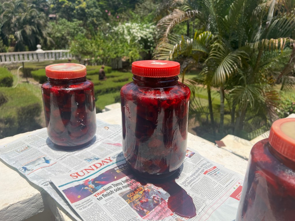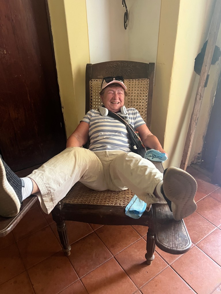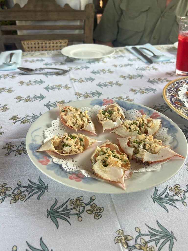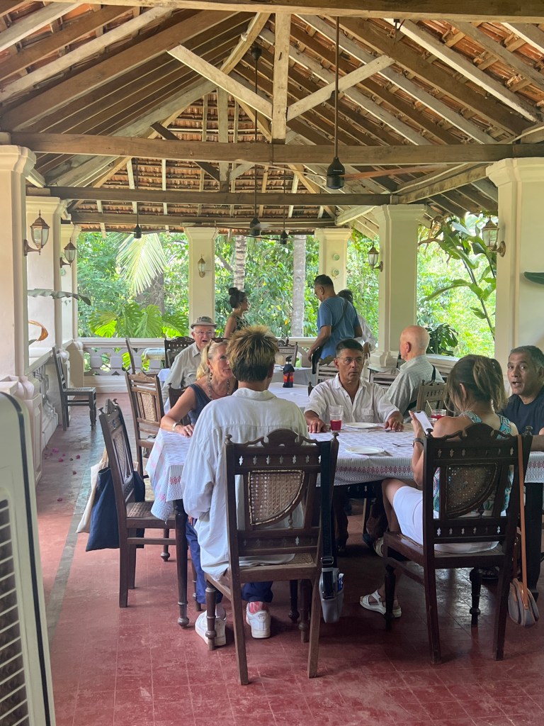 Our next stop was at the Palacio de Deao in Quepem. It is approximately 213 years old. The owner took us on.a tour but not in the private area of the home. After touring the house we had a lovely and tasty lunch overlooking the river. His wife cooked all of the food and we had a mangosteen drink that he makes himself.
