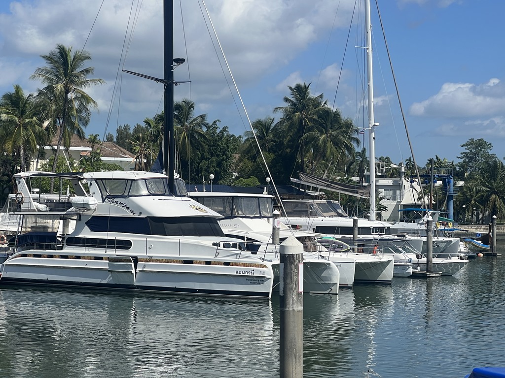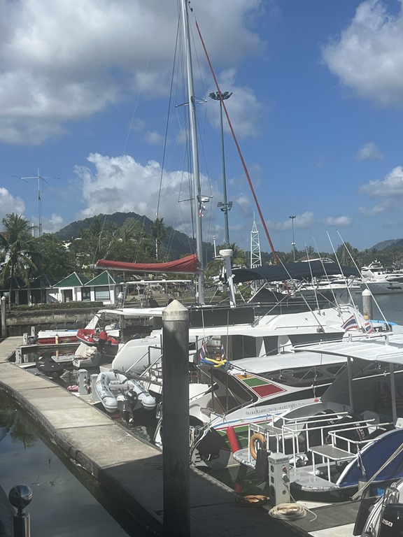 The drive to the Phuket boat harbor was about 40 minutes and Hadi gave us lots of information about Phuket. We have been here three times before so we knew some of the information, but we always learn something new. Phuket is Thailand’s largest island and has a population of about 500,000. It is located in the Andaman Seal and is part of a group of 32 smaller islands. The island is mostly mountainous. 80% of the population is Buddhist. There are 6 international schools on the island which points to how many people are not from here. Before Covid, Hadi said they got 36,000 tourists a day. Tourism is the main economic driver here. It hasn’t yet gotten back up to that level.