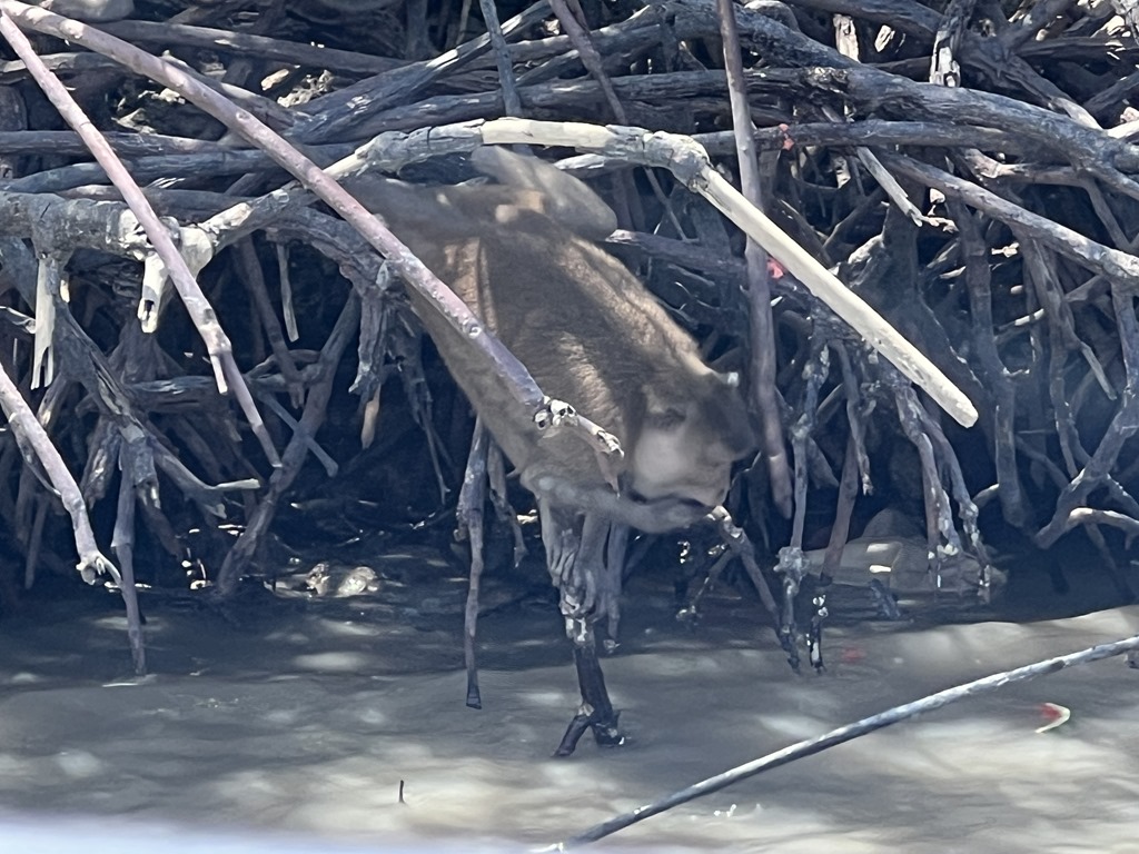 Just before getting back to the dock, we passed a mangrove area with many monkeys that were jumping and playing. Hadi threw some of the watermelon rind out to them – perhaps that was what they were waiting for!