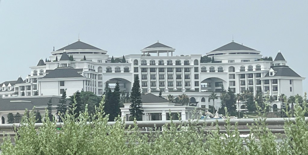 The taxi driver was a young man who spoke English but not too well. He took us all around the town. We noticed how many new buildings there are, and they are mostly unoccupied. Our driver said that COVID made a big difference here but now more tourists and people moving in to the city are helping. He said that mostly Chinese and Japanese people buy here. Later we heard that people may not own land here but can buy houses or condos. But if the government later wants the land you must relinquish it. Here are some of the sights – you will see that the condos and even the storefronts are new and empty.