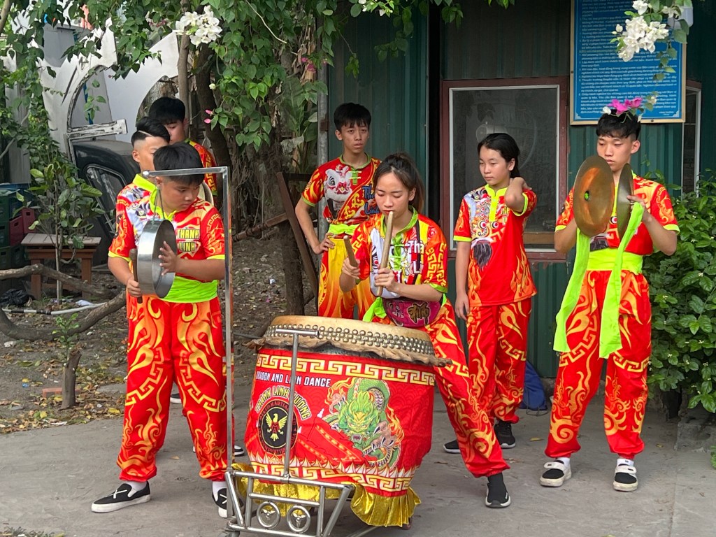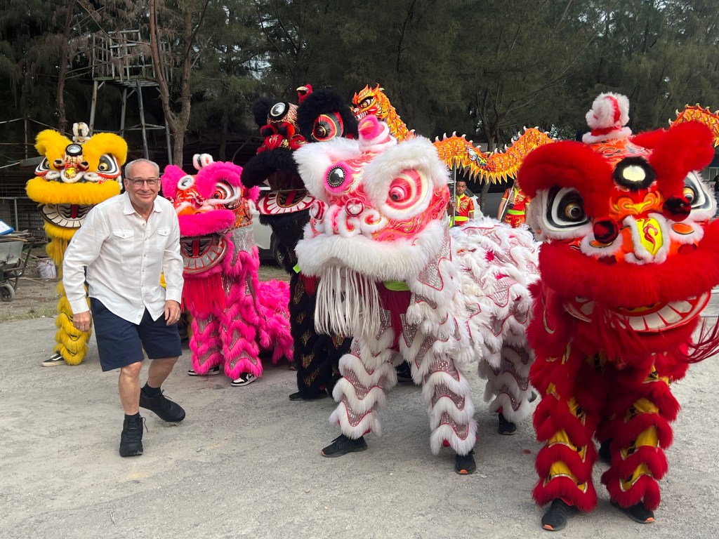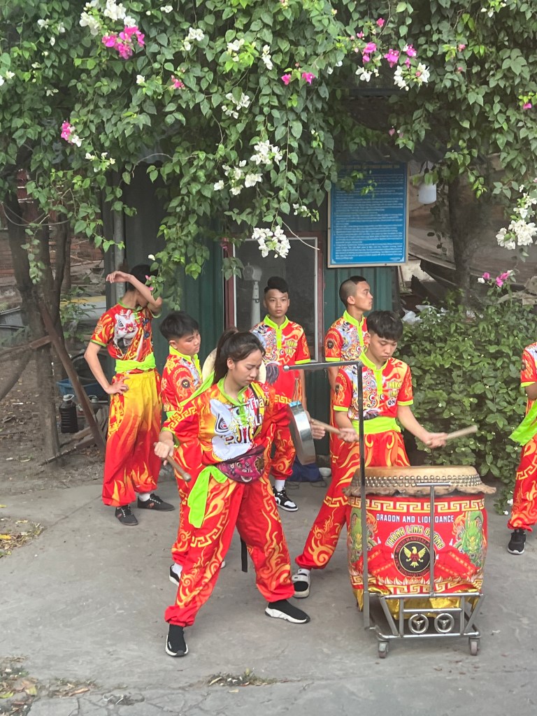 When we arrived at the cave (the only one that is allowed to host events like this), we were greeted by local young people playing drums and lined up to greet us at the entrance. Dragons and Lions were also there and Norm had to greet THEM!