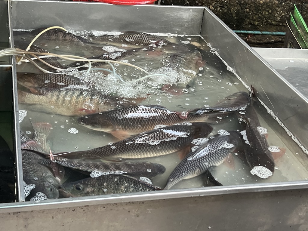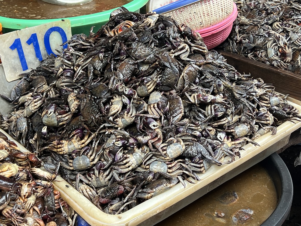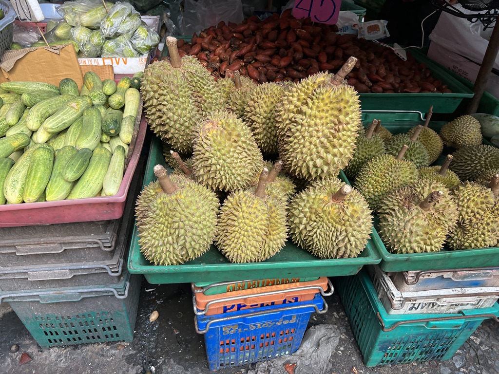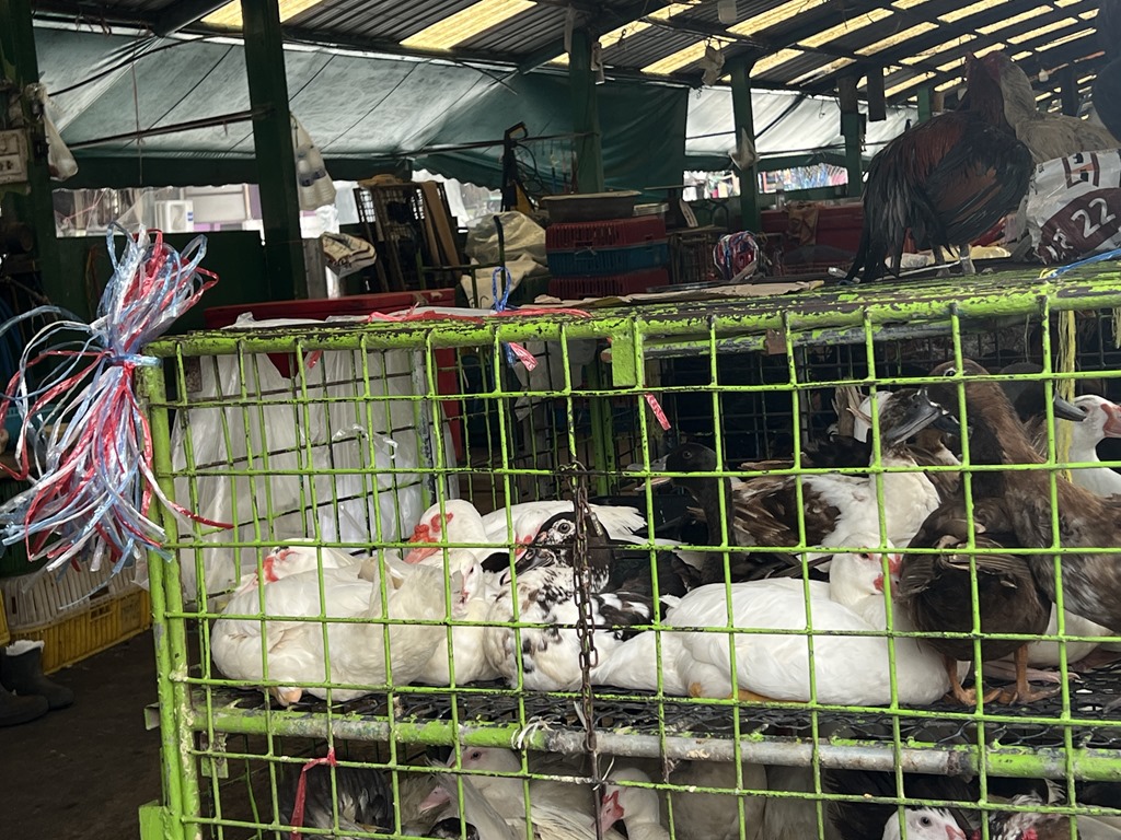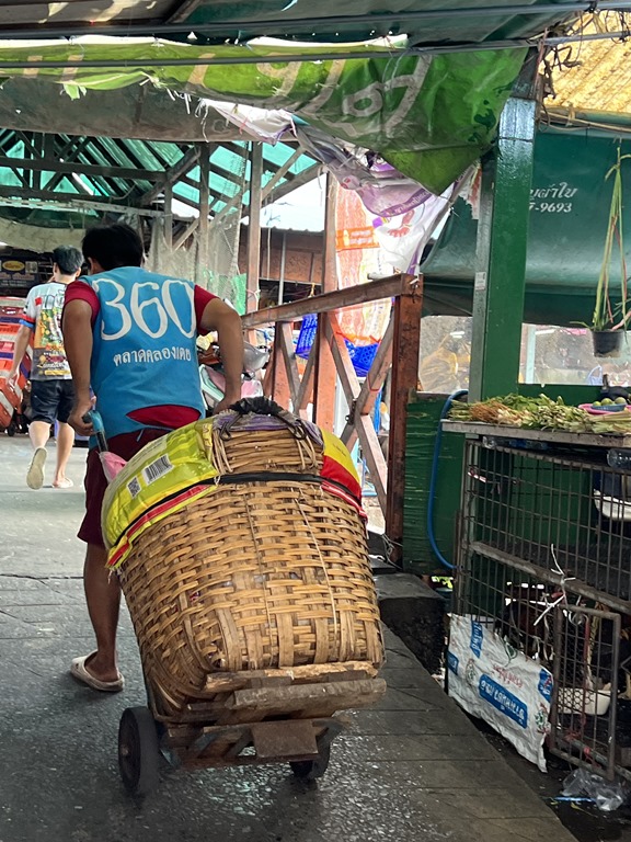 The market was a lot like the many we have seen around the world. This is not a tourist area and it is where the local Thai people purchase their food. It is open 24 hours a day – and you see almost anything here. The first thing we saw was many cages full of live ducks and chickens. The market has wet floors in many places due to the ice used to keep the food cold.