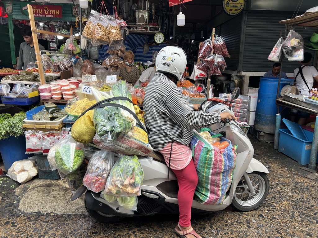 This is our 5th visit to Bangkok- a huge and bustling city of 12 million people. We have seen so many sights here so today we decided to go local and we took a tour by tuk tuk to the Klang Toey market. We are lucky – as a small ship we can come into the river and dock much closer to the center of the city – the bigger ships dock more than 2 hours away since they cannot come into the river and under the bridges here. This building we saw from the ship looks like it is crumbling from the top!