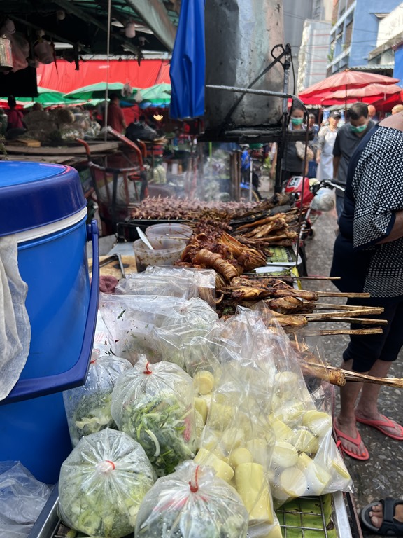 Our tour guide was Gina and she was very good. We were a group of only 16 people. We arrived after 2 and it was already almost 99 degrees. We went by bus to the area where we met the tuk tuk drivers – we got into our tuk tuks (named for the sound they make when moving) and headed through the traffic to the market.