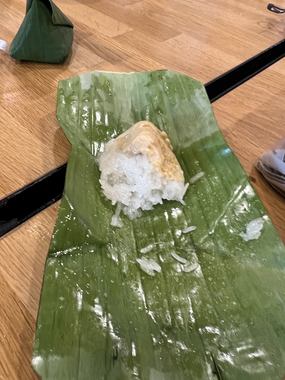 Gina bought me some mangos and she bought mangosteen and sticky rice with mango wrapped in banana leaf for us to sample later.