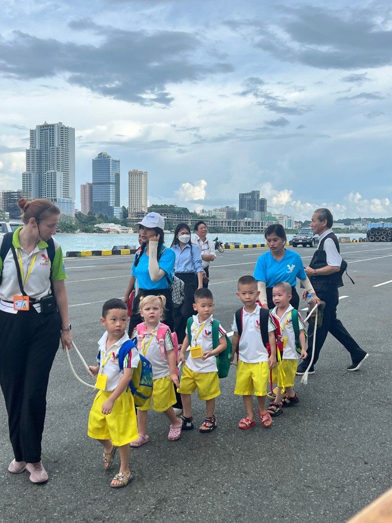 When we returned to the port, we saw this group of children who came to see the ship! One of our friends gave them the chocolates we get on our pillows every night.