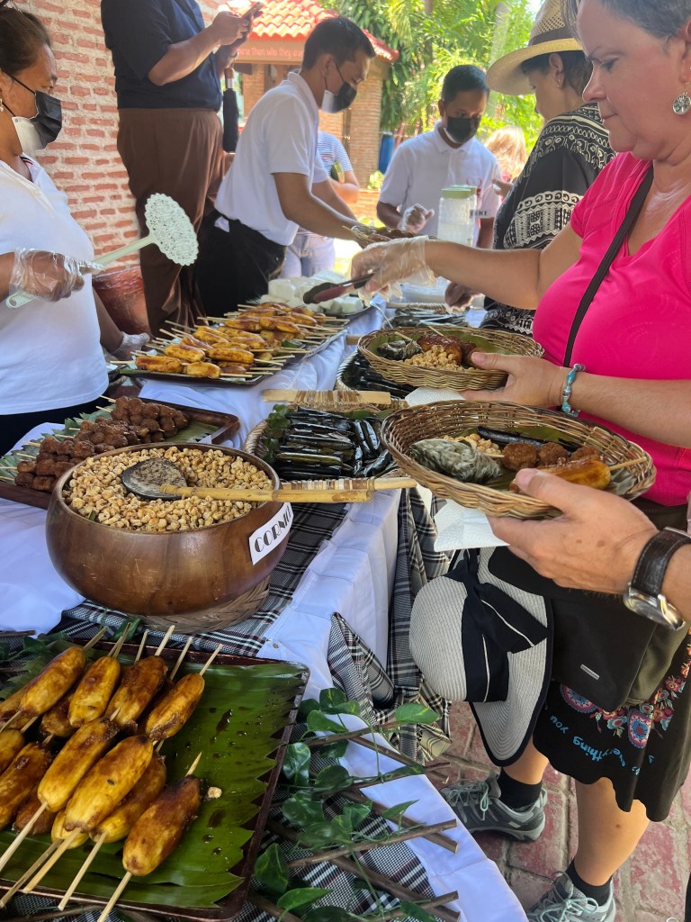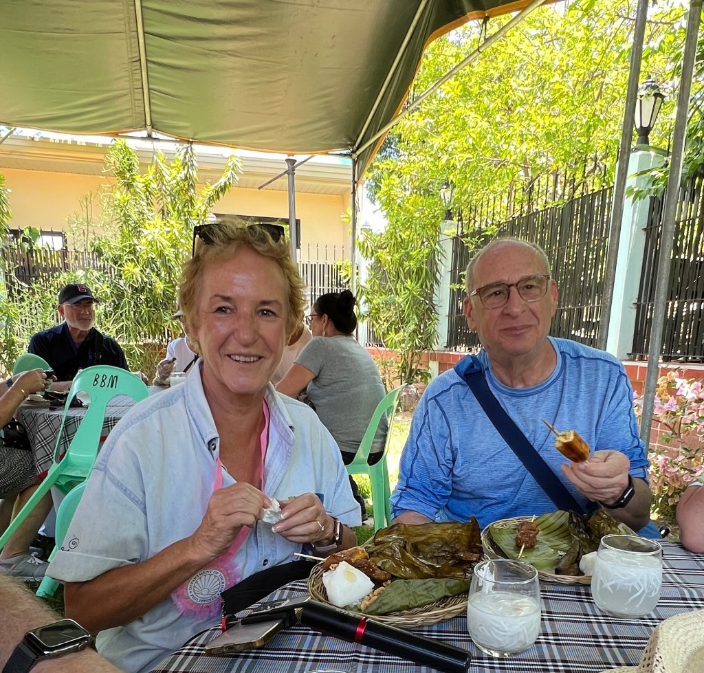 We visited the home and museum of the artist Luna. Many of his works were on display there, but the real reason for the visit was the first of two food tastings. We had two types of sticky rice wrapped and cooked in banana leaves, a crunchy corn, a coconut drink with fresh coconut shredded into the drink, another large rice cake, a roasted banana with syrup on the outside and skewers of a sweet sticky dough. I liked everything!