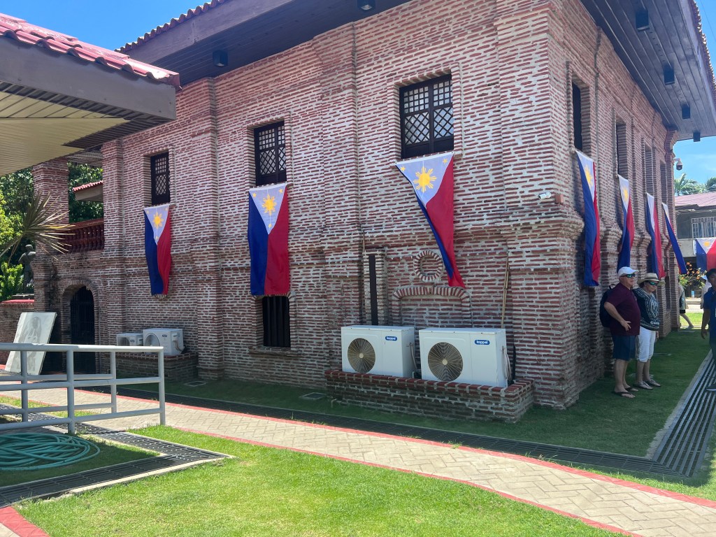 Our tour today was the Ilocos Norte Culinary and Heritage Tour.Our guide was Albert. He gave us a lot of information about the area which is in the northwest of the country. They rely mostly on agriculture here including products such as tobacco, garlic and both yellow and white corn. In his sense of Filipino humor he said that they have yellow corn and white corn but no unicorn. Groan. He also said that a lot of people (including his mother) think that garlic will keep evil spirits away. He also mentioned that is is the National Flag day and Philippine Independence day is next week so that explains the large number of flags we see everywhere. The drive through the countryside was quite beautiful, with the mountains in the background and lots of fields with goats, buffalo and cattle grazing in them.
