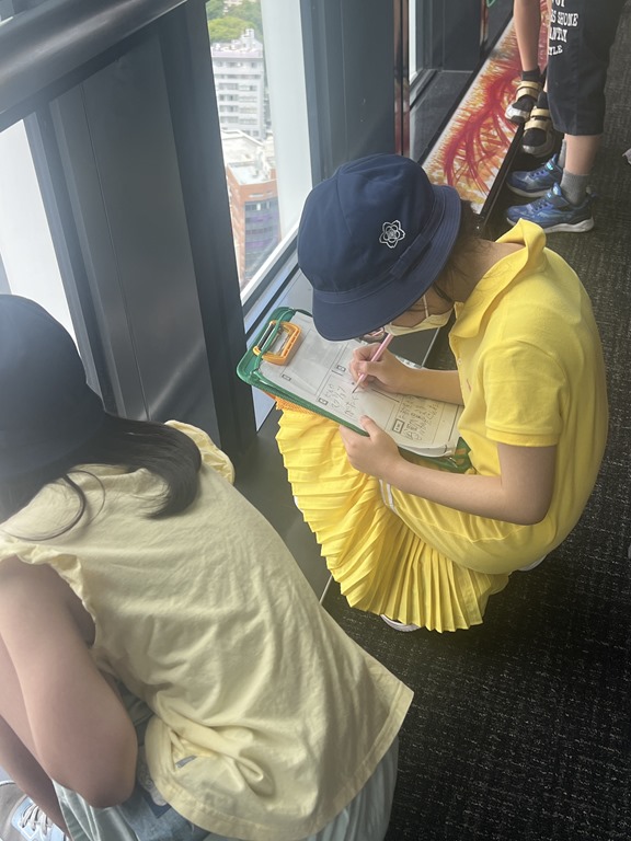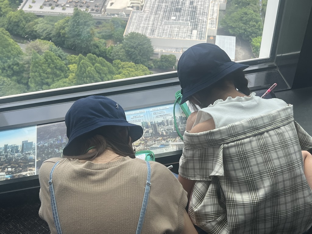 The Tokyo Tower is a broadcasting tower that was designed to look like the Eiffel Tower. It was built in 1968 and is 333 meters high. We went to the observatory at 150 meters. Again, it was pretty hazy and hard to see very far. But what was so interesting was the groups of school children carrying packs with note taking areas who were at the various viewpoints taking notes.