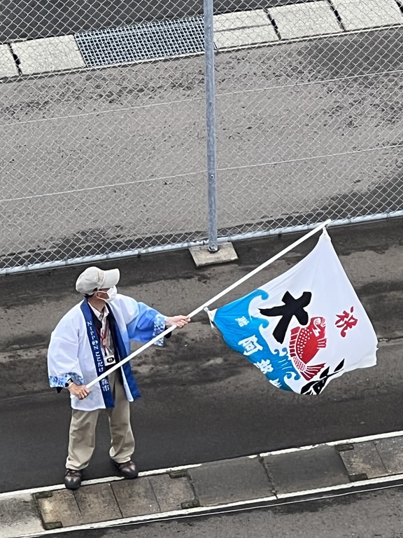 The local artists performed on the large drums and on the string instrument that we have seen in other ports, the shamisen. Neputa means “sleepy” and there is a huge festival, the Aomori Neputa Matsuri which takes place in early August. It is a fire festival and attracts more than 3 million visitors. We saw many of the 80 different fan shaped floats and images of warriors that parade through the town during the festival. The parade is accompanied by flute and taiko (Japanese drum) players. Neputa is said to have originated from the event Nemuri Nagashi, a traditional event to banish the invisible sleep demon who makes people drowsy during the summer when farm work is at its busiest. The use of lantern and light is a hallmark of this festival. Three large drums called Odaikos are the highlight of this festival and the sound is so profound that viewers feel the vibration to their core. We certainly jumped when the first one was struck. Then some of the audience members, including one of our passengers, were invited to participate.