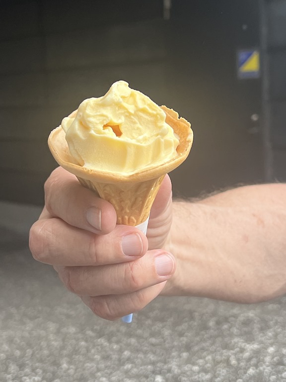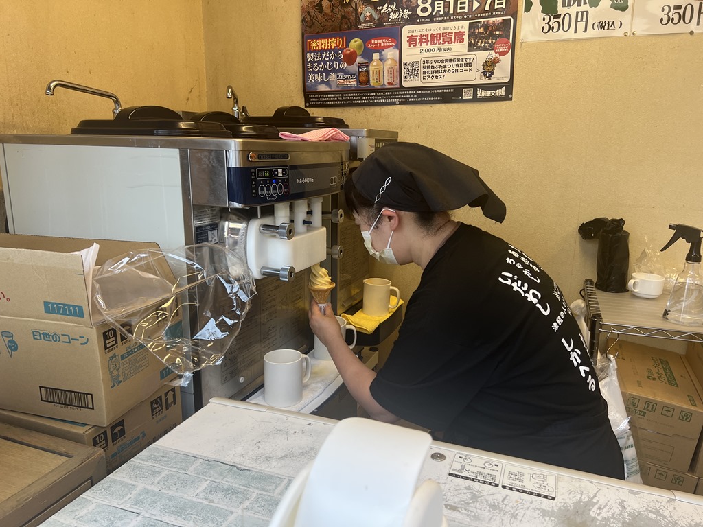 I have mentioned the many vending machines here. You can get cold coffee and hot coffee from the same vending machine. Norm got to be fond of the coffees and had many of them while we have been in Japan. I loved the ice cream and had apple soft serve here. It was delicious. We bought some cookies made in an iron mold and one of the apple cakes.