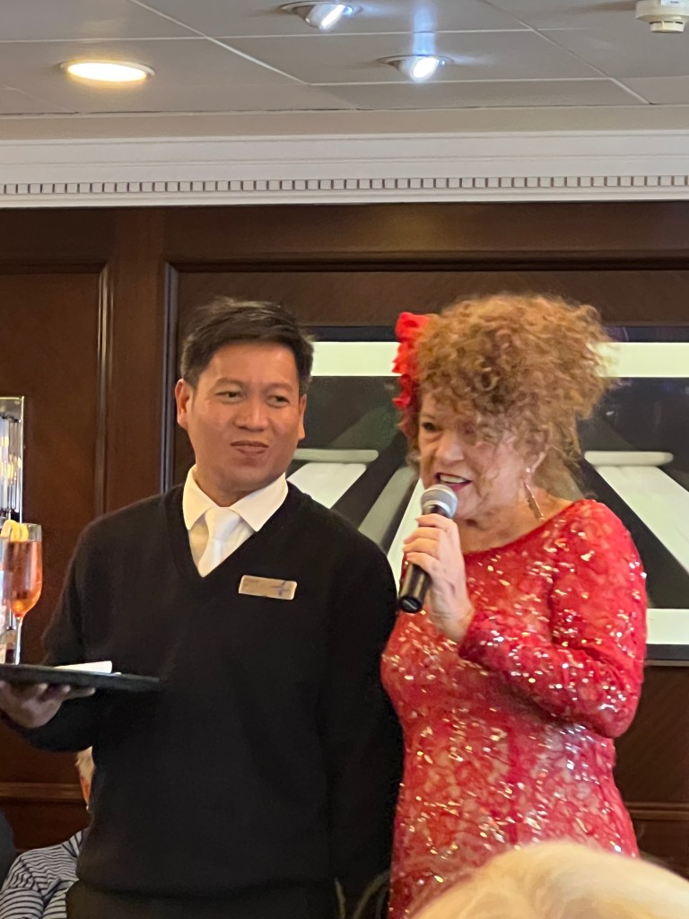 One of our bar servers, Derrick, had a birthday on June 28 and Carolyn serenaded him at the show. Then he had a birthday again the next day.