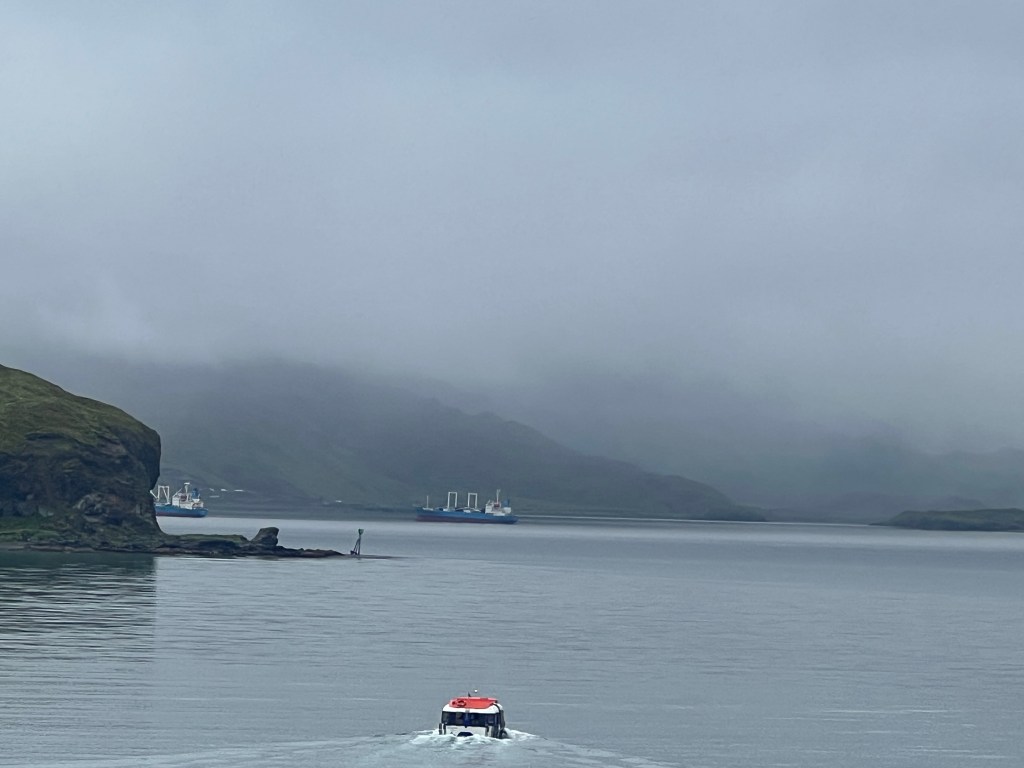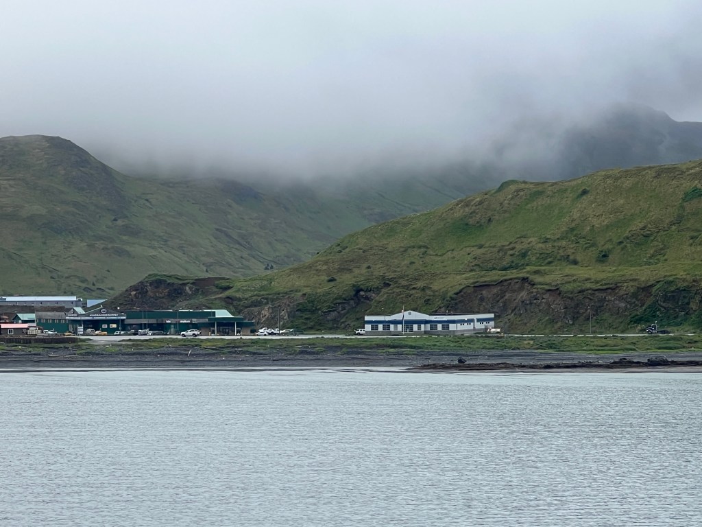 Today we reached the US, so that means there are only 2 weeks left in our Around the World voyage. Our port is Dutch Harbor. That is the name of the port but the town is called “Unalaska”. The harbor is on Amaknak Island. It was the location of the Battle of Dutch Harbor in June 1942 and was one of the few sites in the US to be subjected to aerial bombardment by a foreign power during WWII.