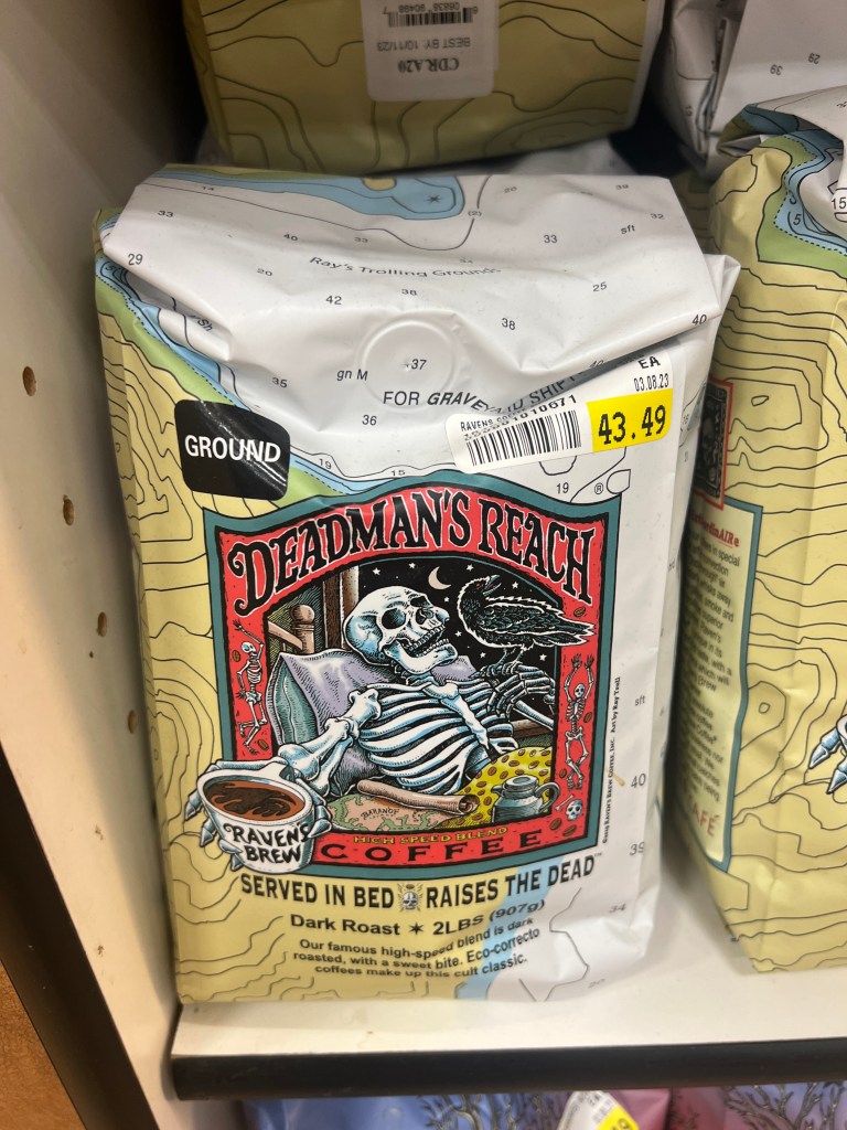 One interesting thing in the store was these brands of coffee. But even more interesting was the cost! $43.49 for a 2 pound bag!