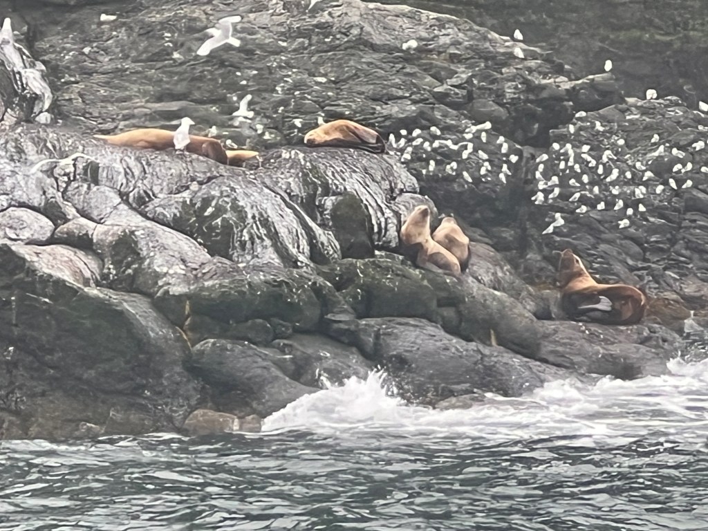 Once out on the boat, we had a cloudy, overcast day so it was sometimes hard to get pictures. We did see sea otters, Dall’s porpoises, many bald eagles and puffins. These pictures are really the best I could get. The scehery in this Kenai Fjords area was just stunning, though. We actually got back after the ship was scheduled to leave port but because it was a ship tour, they waited for us.