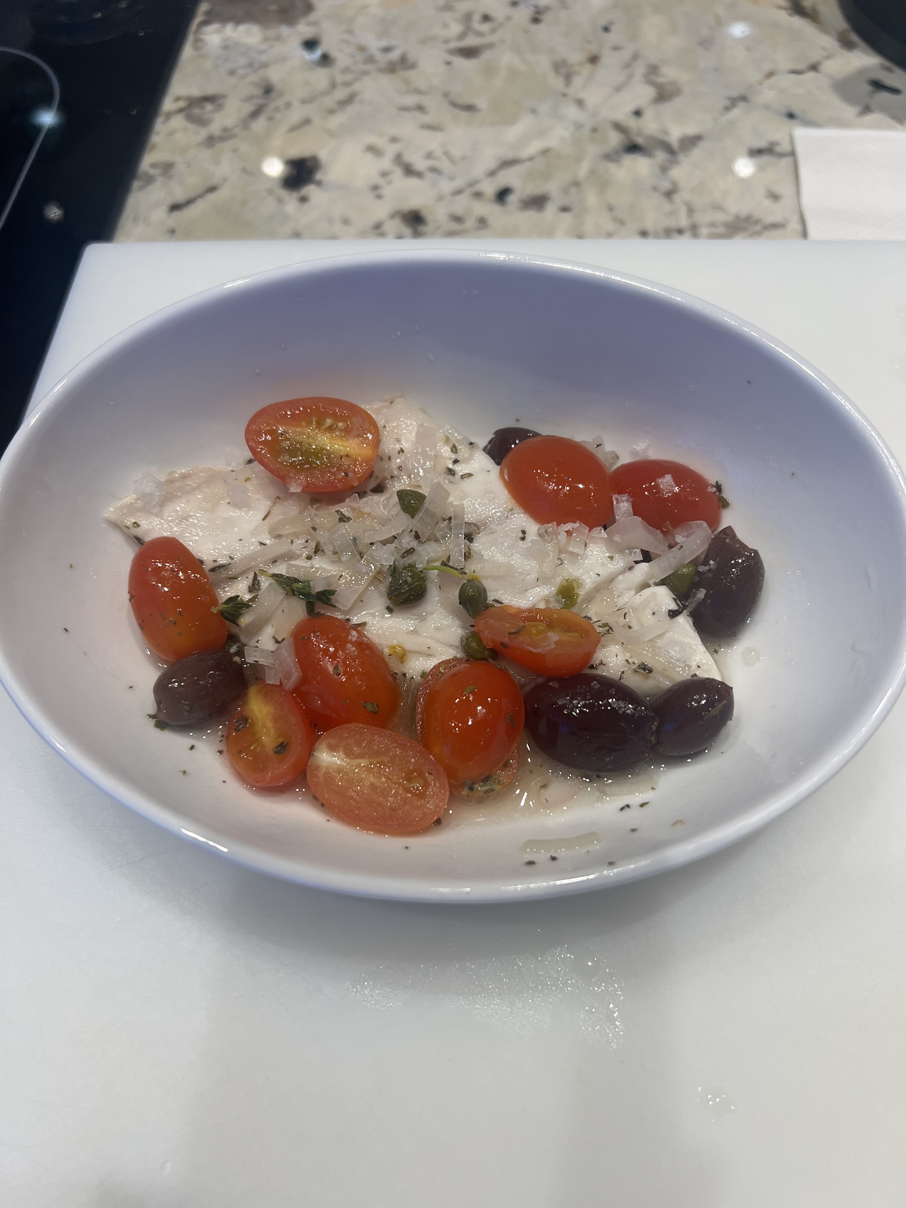 The dishes we prepared were Miso glazed sea bass, Nordic salmon rillettes, Pesce Provencal and Sole meunière. Norm joined me at the end of the class to taste the food.