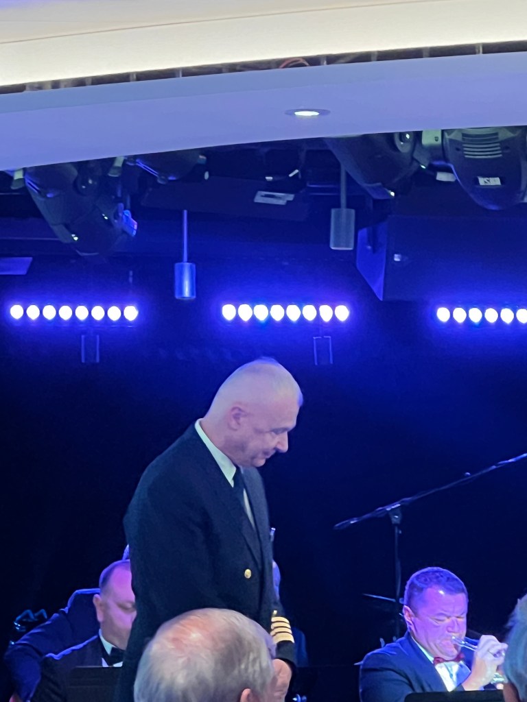 The Captain’s cocktail party was tonight and we saw all of the senior officers. Damien is the GM and we also know him from previous trips.