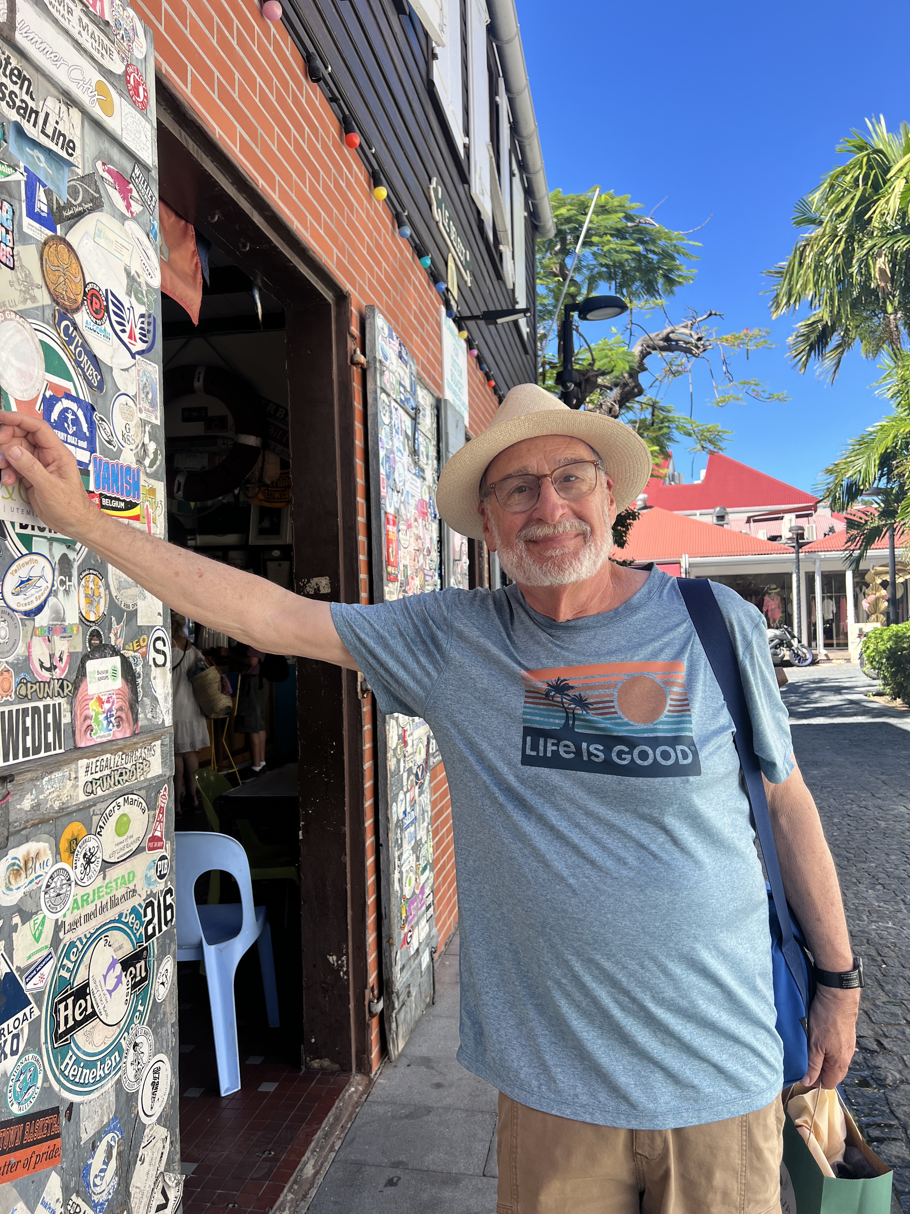 Mark and Adam looked up the yachts that are here for the holidays. They included ones owned by Jeff Bezos and Steven Spielberg. We didn’t spot the yachts or the owners in town. But there are many wealthy residents and visitors here and the prices do reflect that. We noted many of the finest shops and enjoyed browsing. The island is very close to St. Martin. They enjoy 300 days of sun every year so it is perfect for vacations. There are lots of beaches and the island consists of only 8 square miles. Last time we went to Shell Beach and enjoyed it.