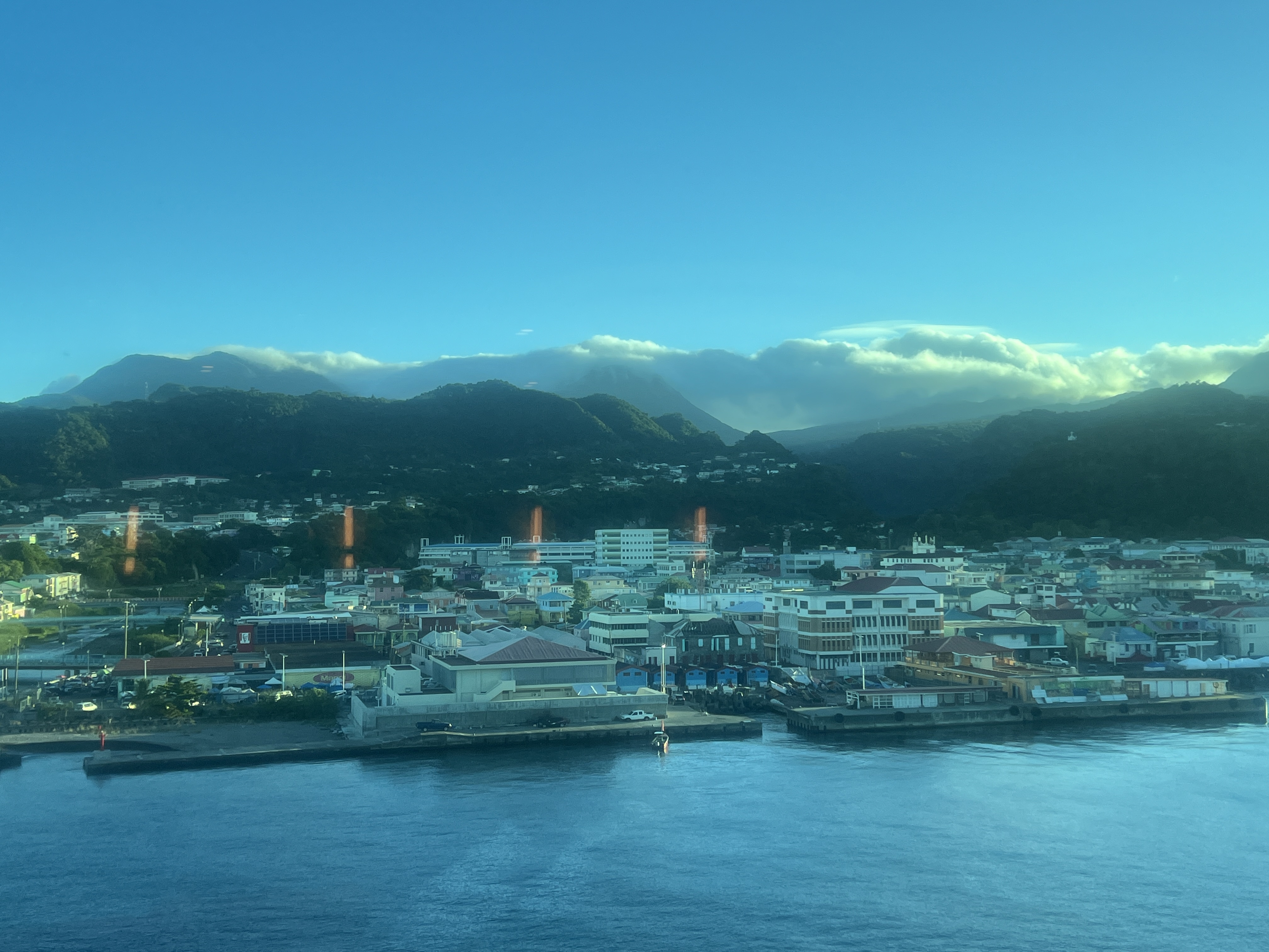 This is our first time in Dominica. Roseau is the most important port for foreign trade which included many fresh vegetables and fruits. The Roseau river is among the largest rivers that flow through any Caribbean capital. It is independent now but in the past has been ruled by the French and the English. People speak Creole, English and French. The island was “discovered” by Columbus and he named it Dominica which means Sunday in Italian.