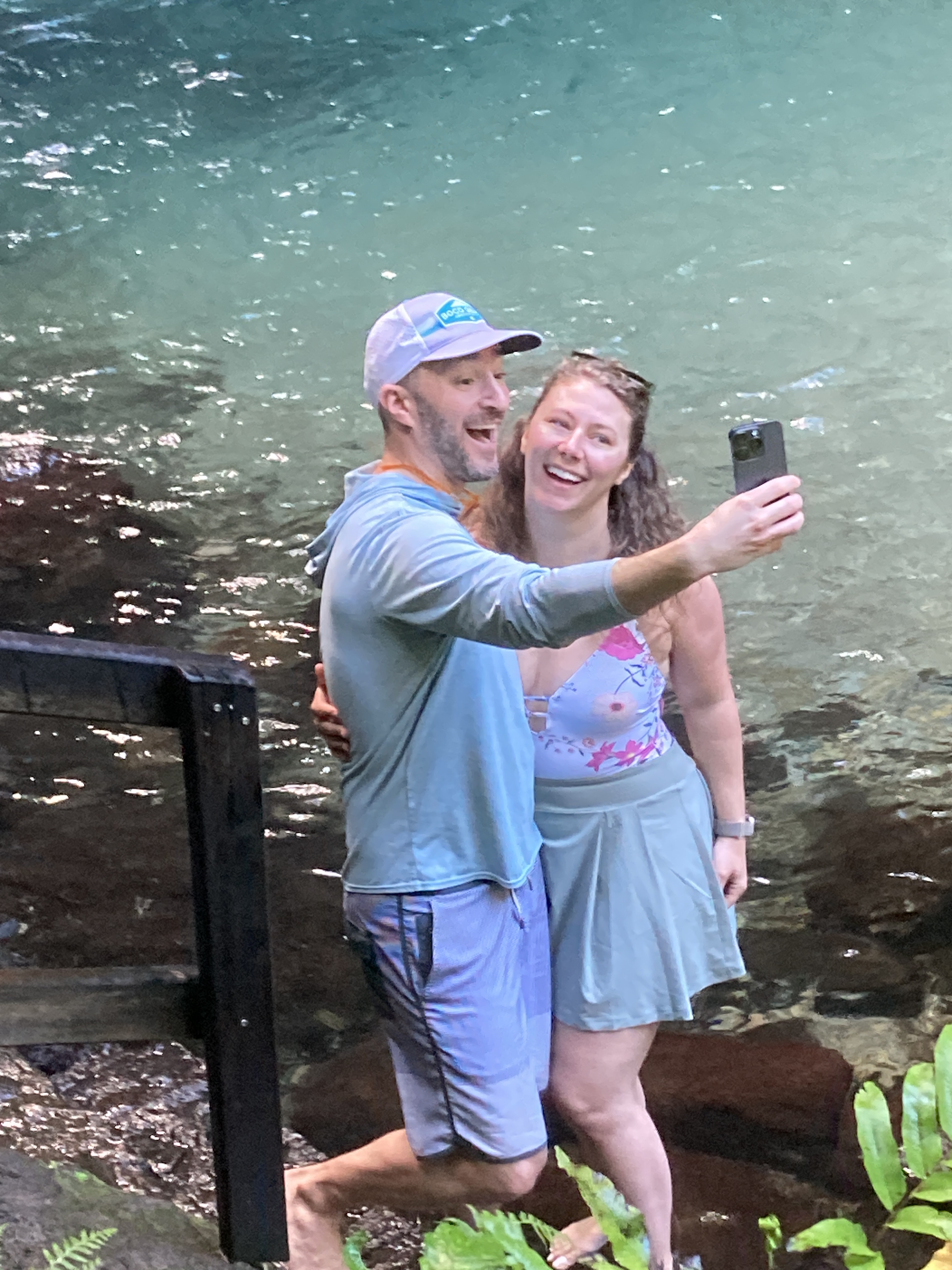 After a long drive up through the mountains and the rain forest, we arrived at the Emerald Pool in the National Park. It was a walk on a pretty rocky path to get down to the pool, and to swim required walking on slippery stones, so some of us, including me, just put our feet in the cool refreshing water. The waterfall and the whole area was very beautiful.