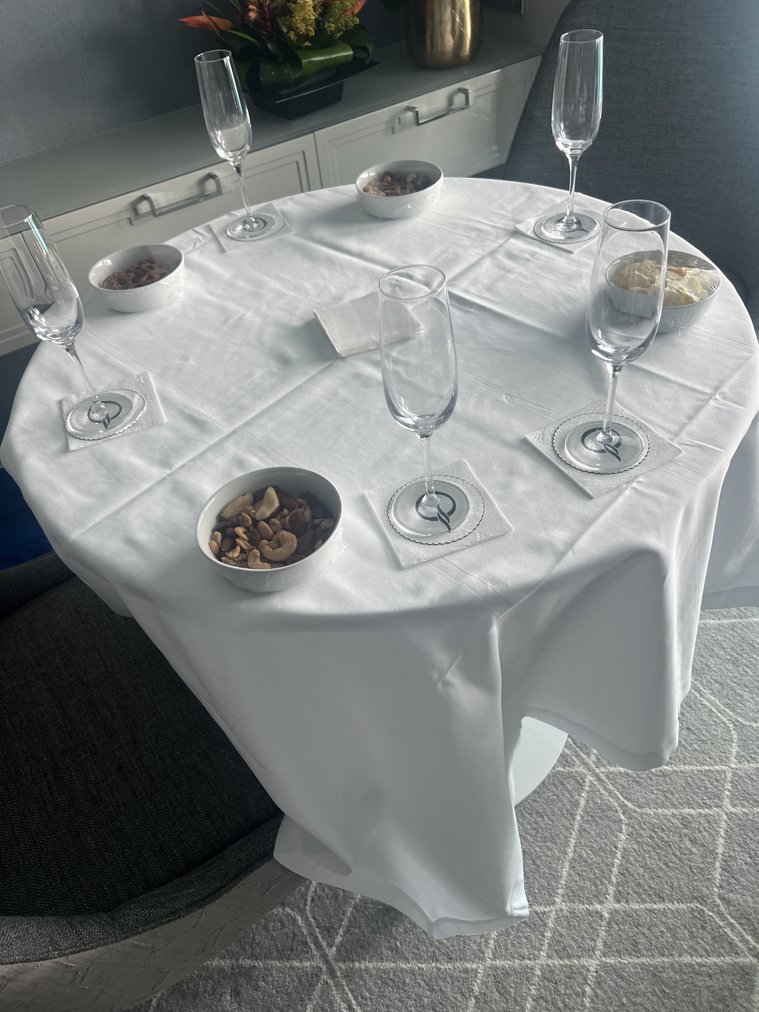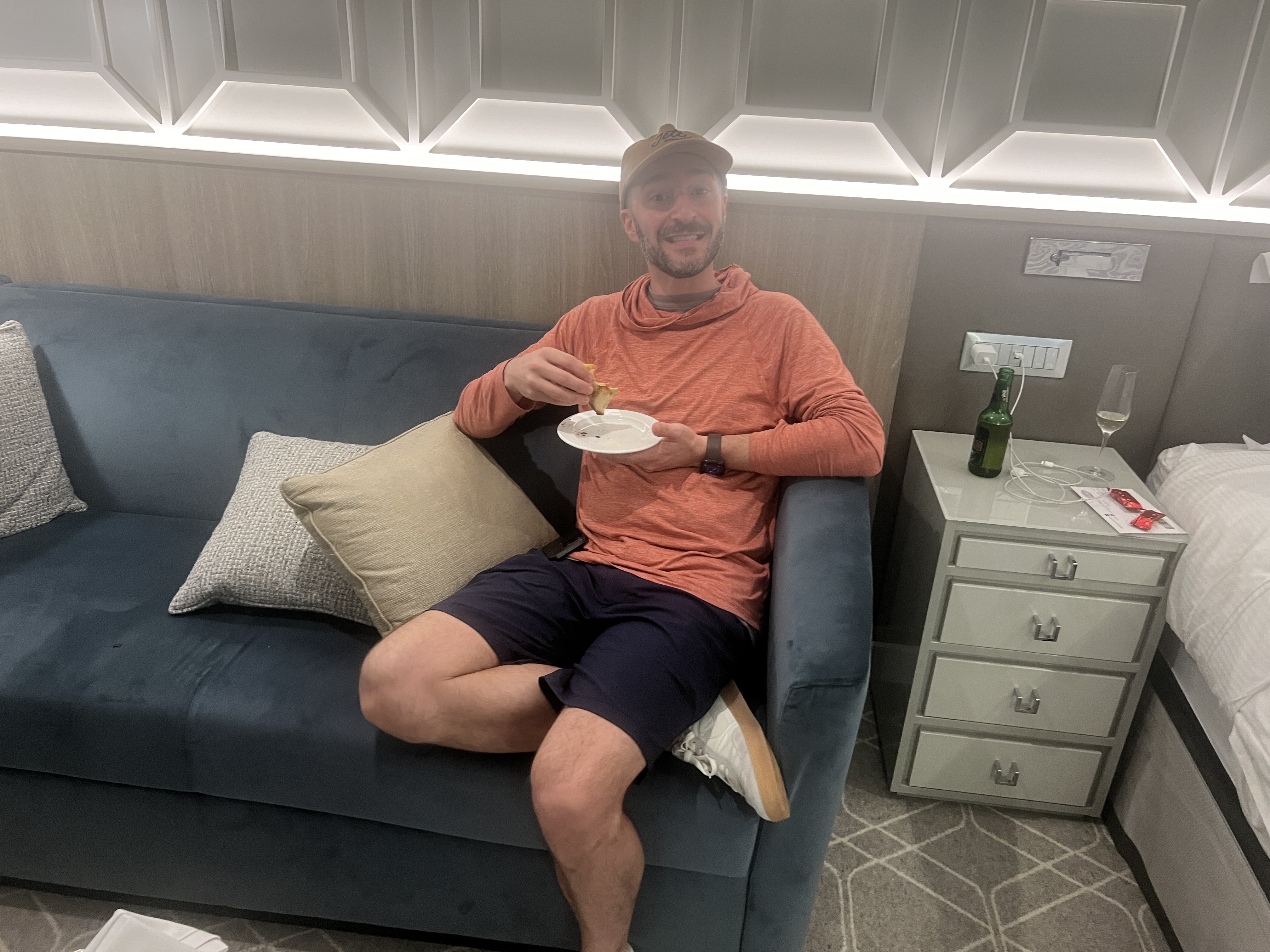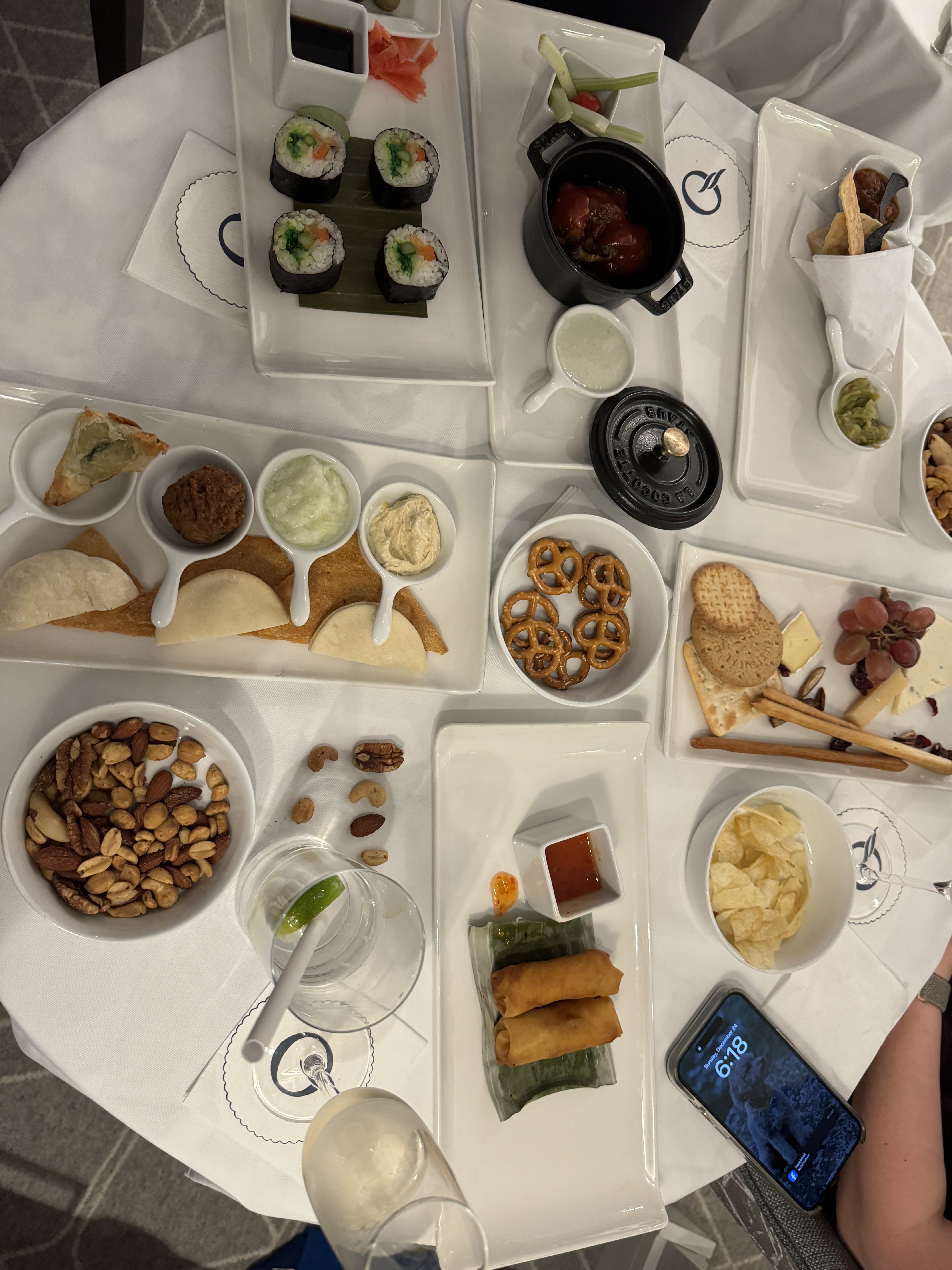Because the cooking class ran from 4 – 6 pm and it was Christmas Eve, we had asked our butler, Melvin, to create a cocktail and pizza party in our room. It was a good idea for us to do that since we weren’t that hungry and we could just relax and nibble. Adam then asked Mark, Ramsay and I all of the trivia questions. I got two that they missed at the trivia game!