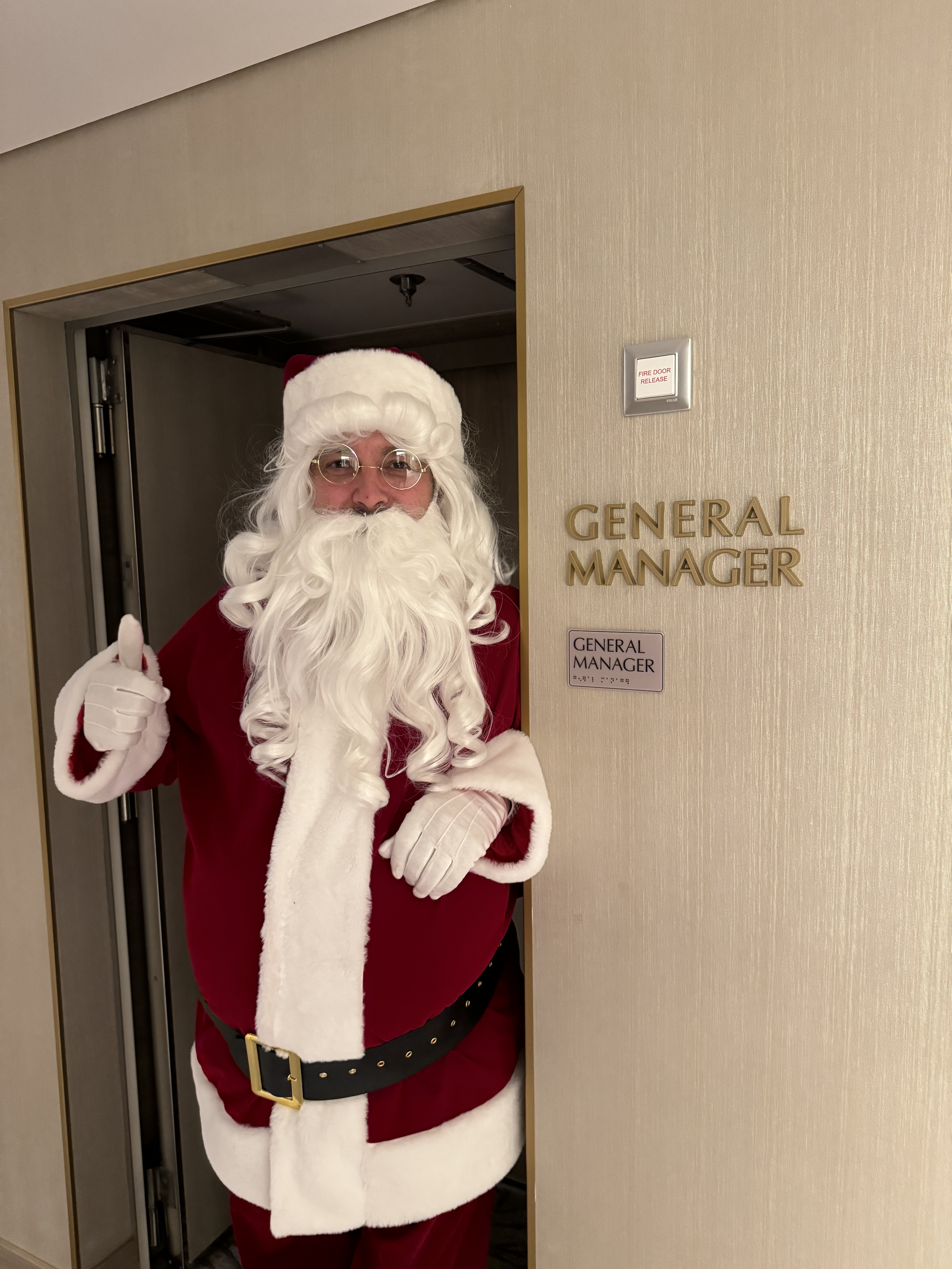 It was a fun Christmas Eve. Adam and I watched the officers and other staff line up for photos. Then Santa went into the General Manager’s office. Hmmmm?