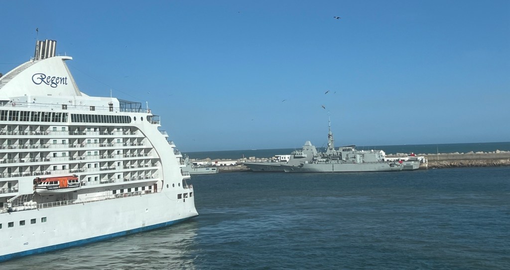 When we arrived at the port, we saw that the Regent ship that has been either leading or following us had already arrived. It is another beautiful day, predicted to be hot but the breezes will probably keep it a reasonable temperature.
