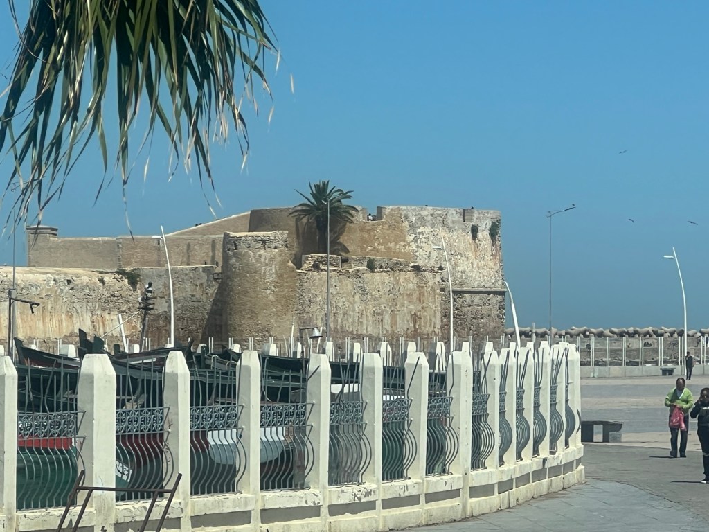 After our visit, we set off for the 90 minute trip to El Jadida. During the trip Larrbe entertained us with Moroccan jokes and many details about life here. Casablanca has the largest mall in Africa, miles of bike trails and is a very clean city. It is also very dry. 40% of the population of 5 million people are employed in agriculture. They have a long coastline of both Atlantic and Mediterranean coasts.