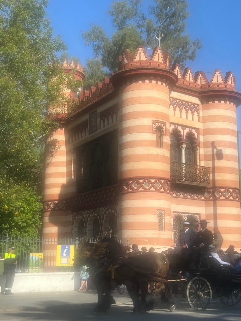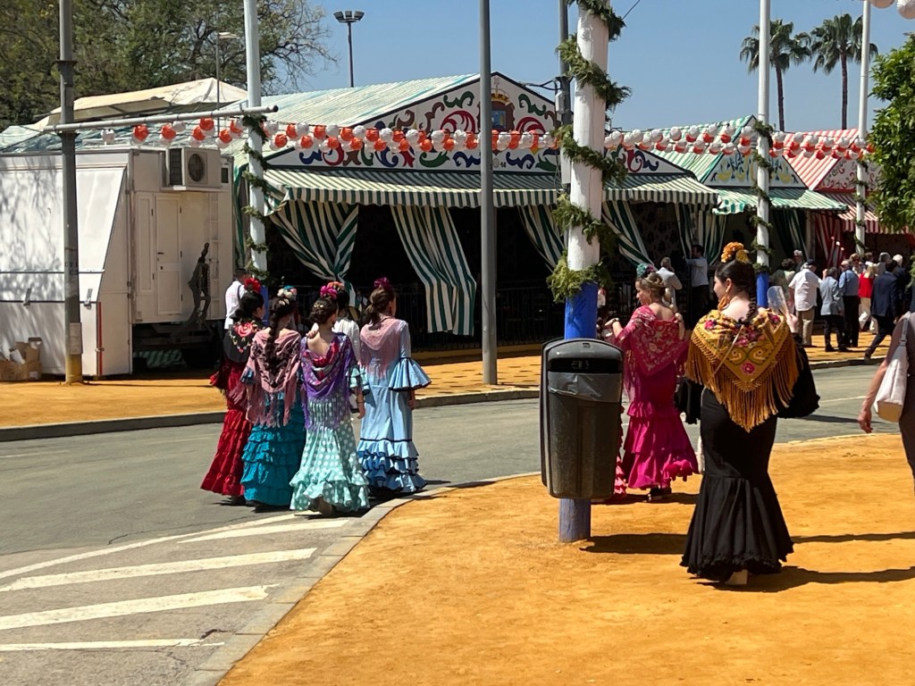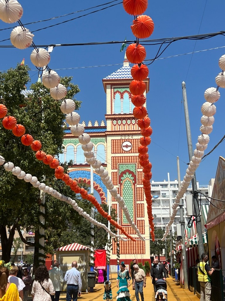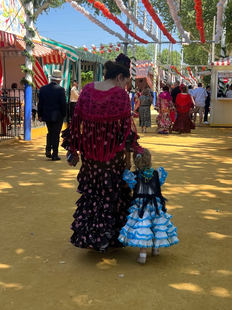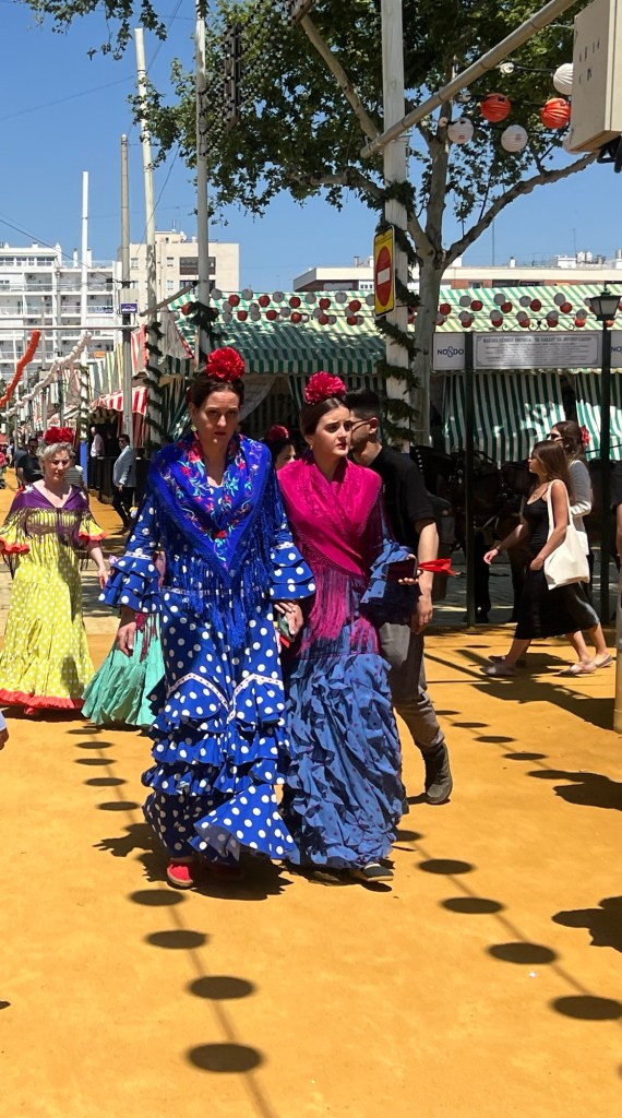 Leslie told us about how lucky we are to be here during Feria de Abril (April Fair). It’s one of the most famous and lively festivals in the country. It usually takes place two weeks after Easter. The fairgrounds are filled with rows of casetas (tents) where people gather to eat, drink, dance, and socialize. Traditional Andalusian music, flamenco dancing, and horse parades are also highlights of the festival. The women typically wear colorful flamenco dresses, and the men dress in traditional Spanish attire. It’s a vibrant celebration of Andalusian culture and heritage.