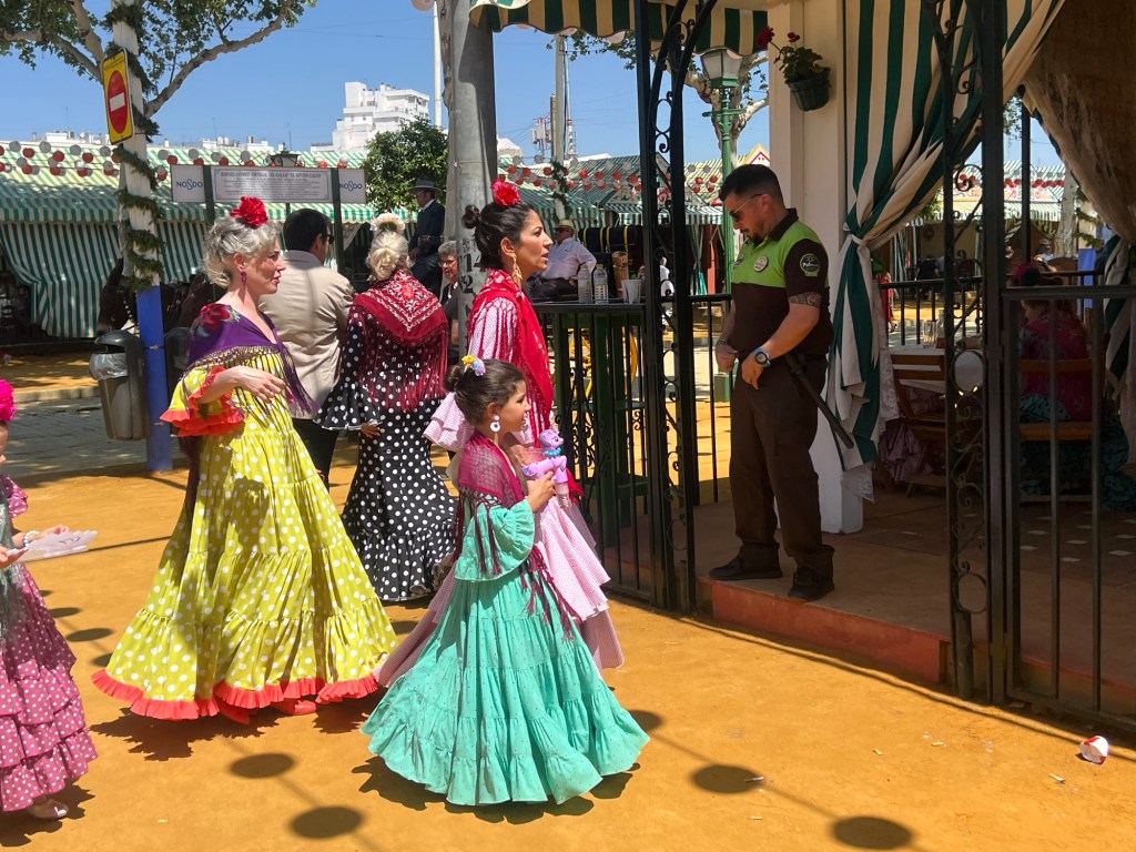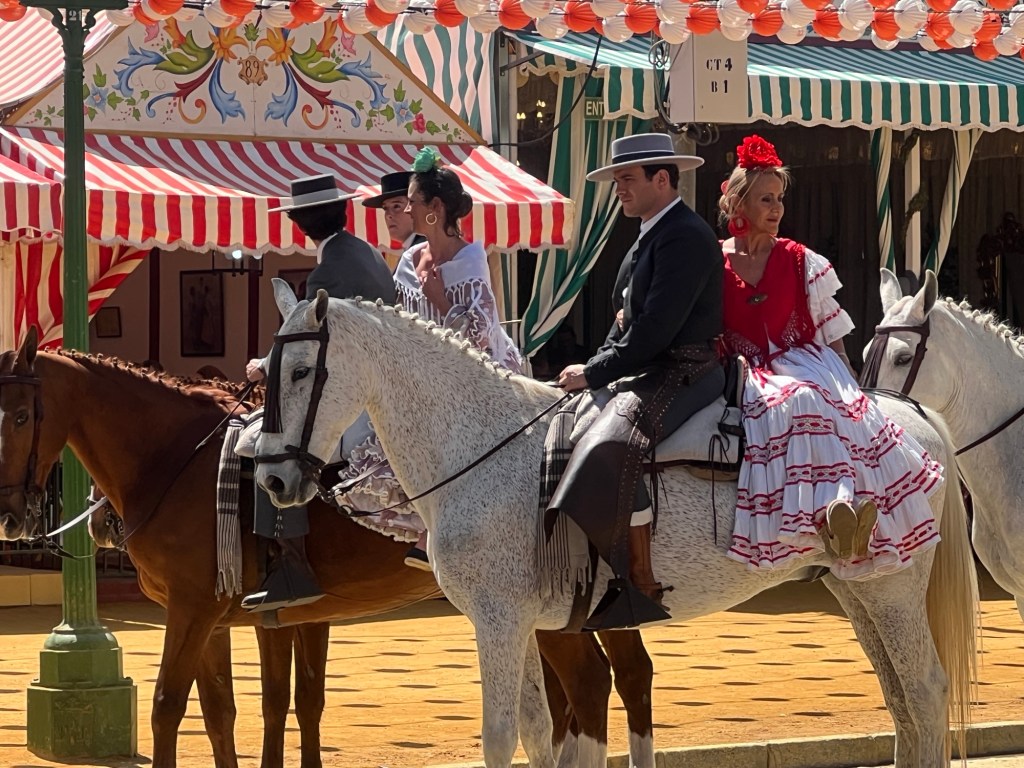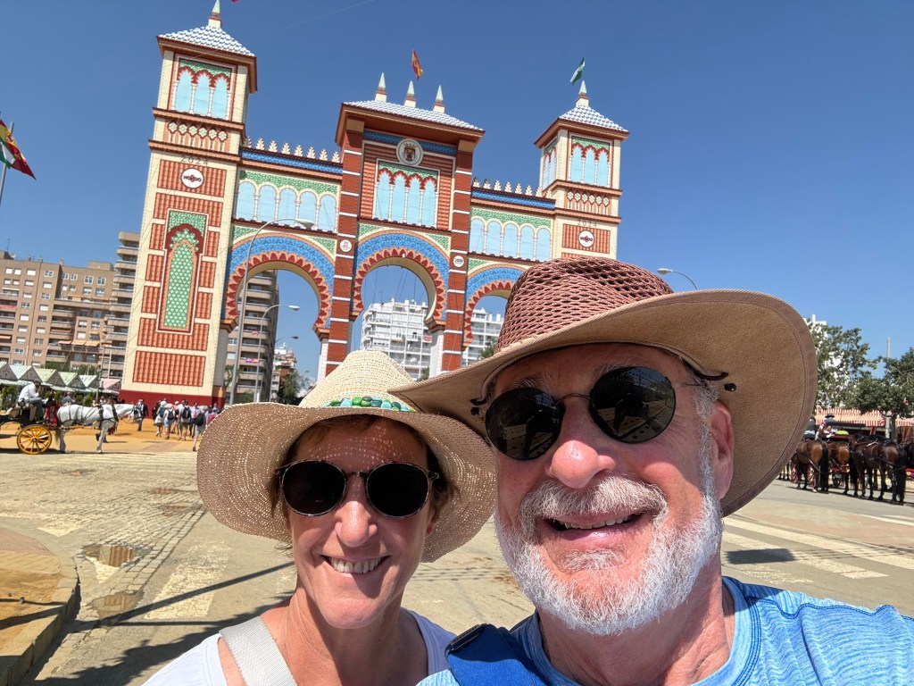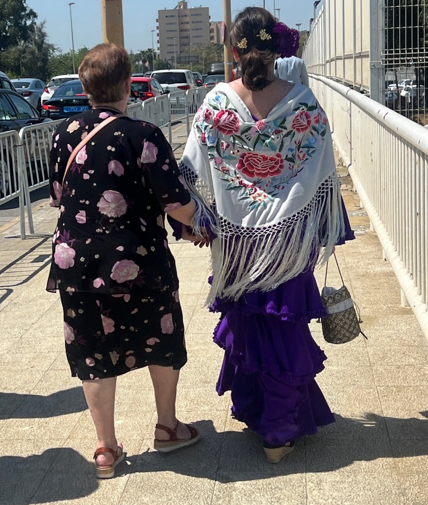 Leslie told us about how lucky we are to be here during Feria de Abril (April Fair). It’s one of the most famous and lively festivals in the country. It usually takes place two weeks after Easter. The fairgrounds are filled with rows of casetas (tents) where people gather to eat, drink, dance, and socialize. Traditional Andalusian music, flamenco dancing, and horse parades are also highlights of the festival. The women typically wear colorful flamenco dresses, and the men dress in traditional Spanish attire. It’s a vibrant celebration of Andalusian culture and heritage.