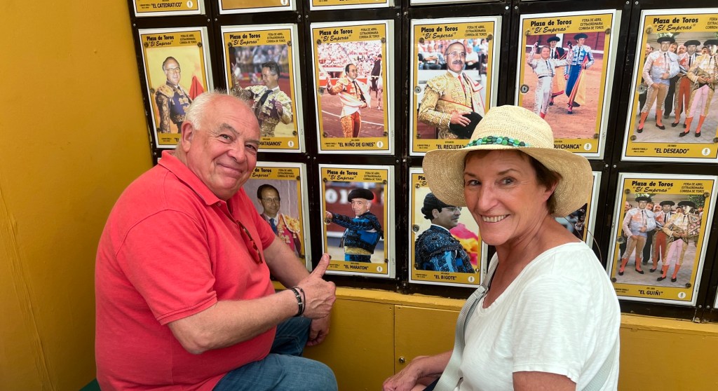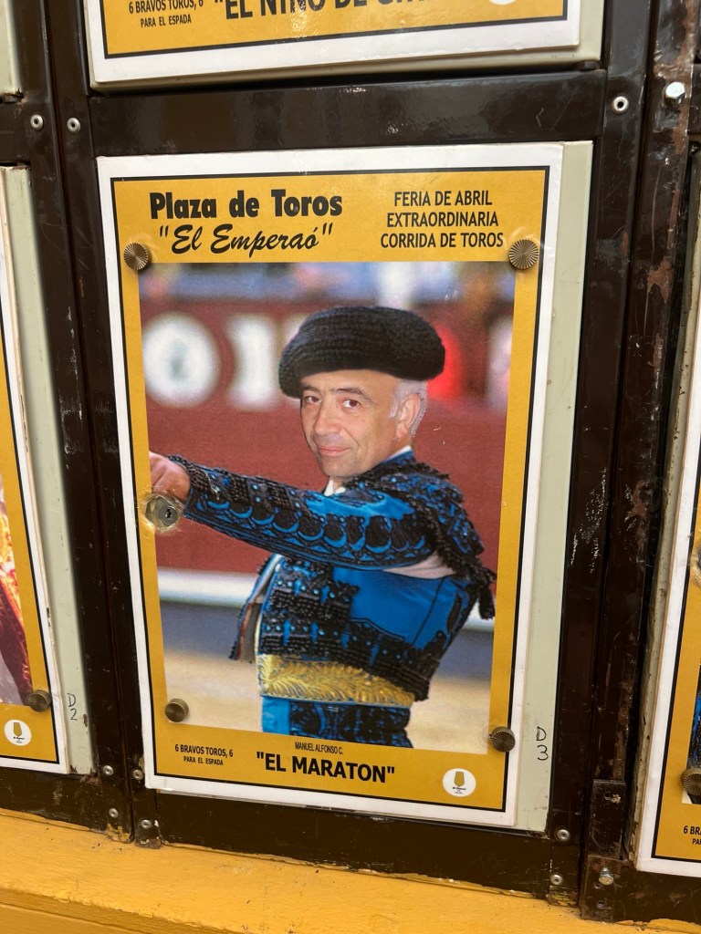 The man who invited us in indicated that he was a former bullfighter and that his picture was on the wall. He asked me to find his picture, and I did! He posed for a picture with me near the photo.