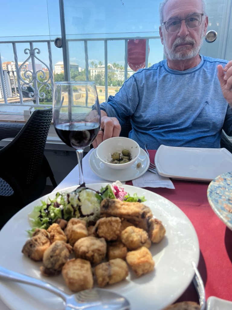 The restaurant was Betis7. We ate on the rooftop overlooking the river. What a delicious meal! We took all of the server’s recommendations and were not disappointed. A tuna and tomato salad followed by a type of fish like a shark, marinated in oil, vinegar and spices and lightly coated with flour and fried like a tempura.