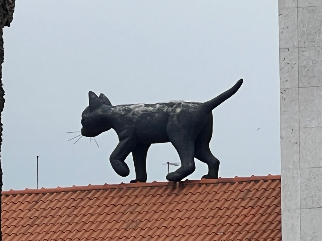 This large sculpture has landed on the roof of the Casa do Turismo in Bocage Square and is called “The Cat and the Wind” by artist Ricardo Romero.
