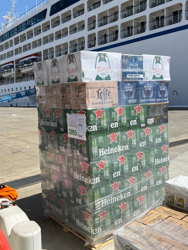 When we got back to the ship, we saw some of the liquor and beer they were loading for us!