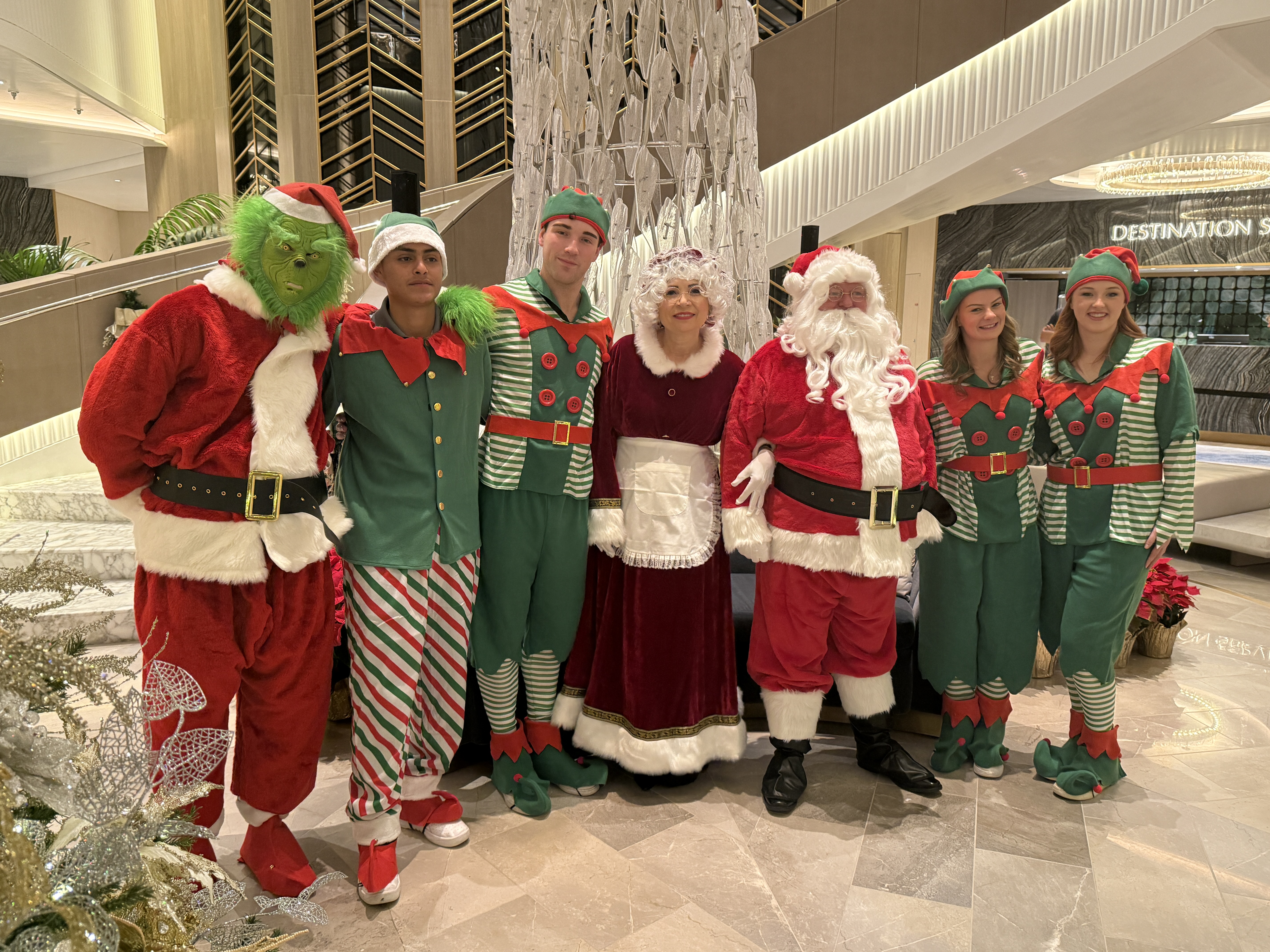 We are cruising the Atlantic Ocean on our two day sail back to Miami. The ship is very festive and Santa, Mrs. Claus and the elves made an appearance this morning. The cookie and goodie table was full and hot chocolate was available to all.