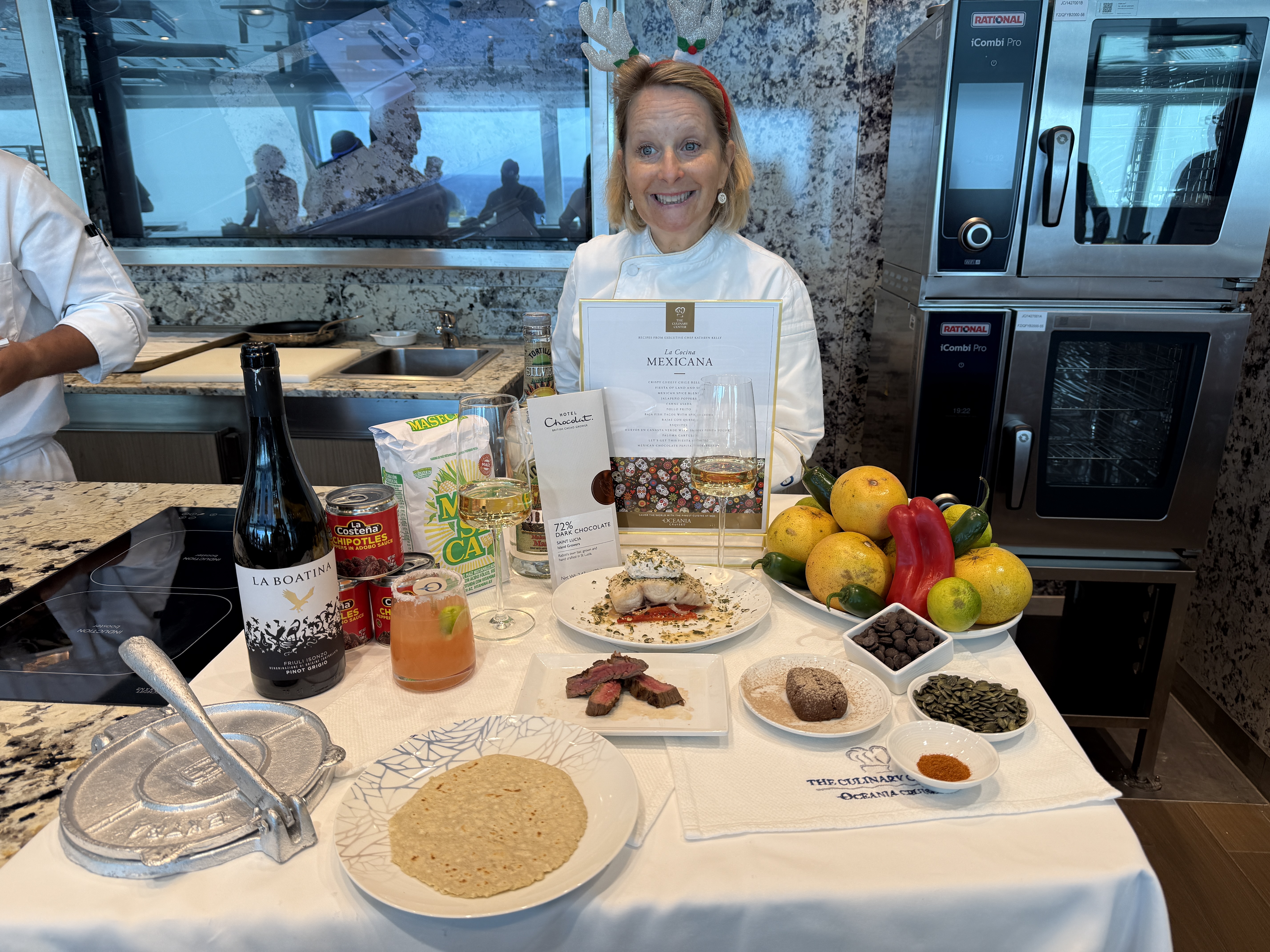 After doing yesterday’s blog I headed for my cooking class – La Cocina Mexican. Noelle was our instructor. We took classes with her last year and also on Marina before that. She’s really a great person and instructor. We caught her appearance on the Today show a couple of months ago.