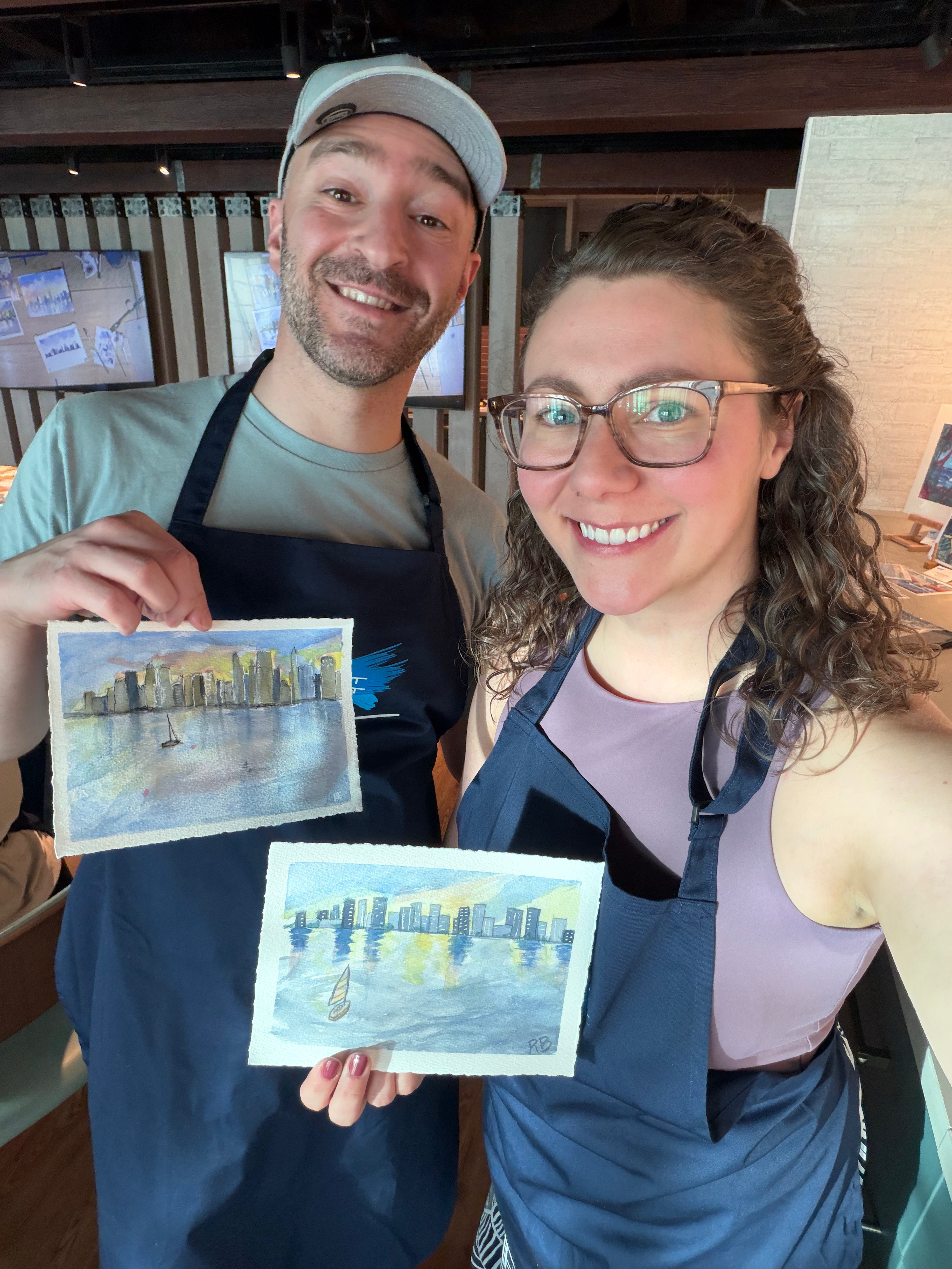 Mark and Ramsay went to the art class – here are their watercolors of the Miami skyline. They are so good!