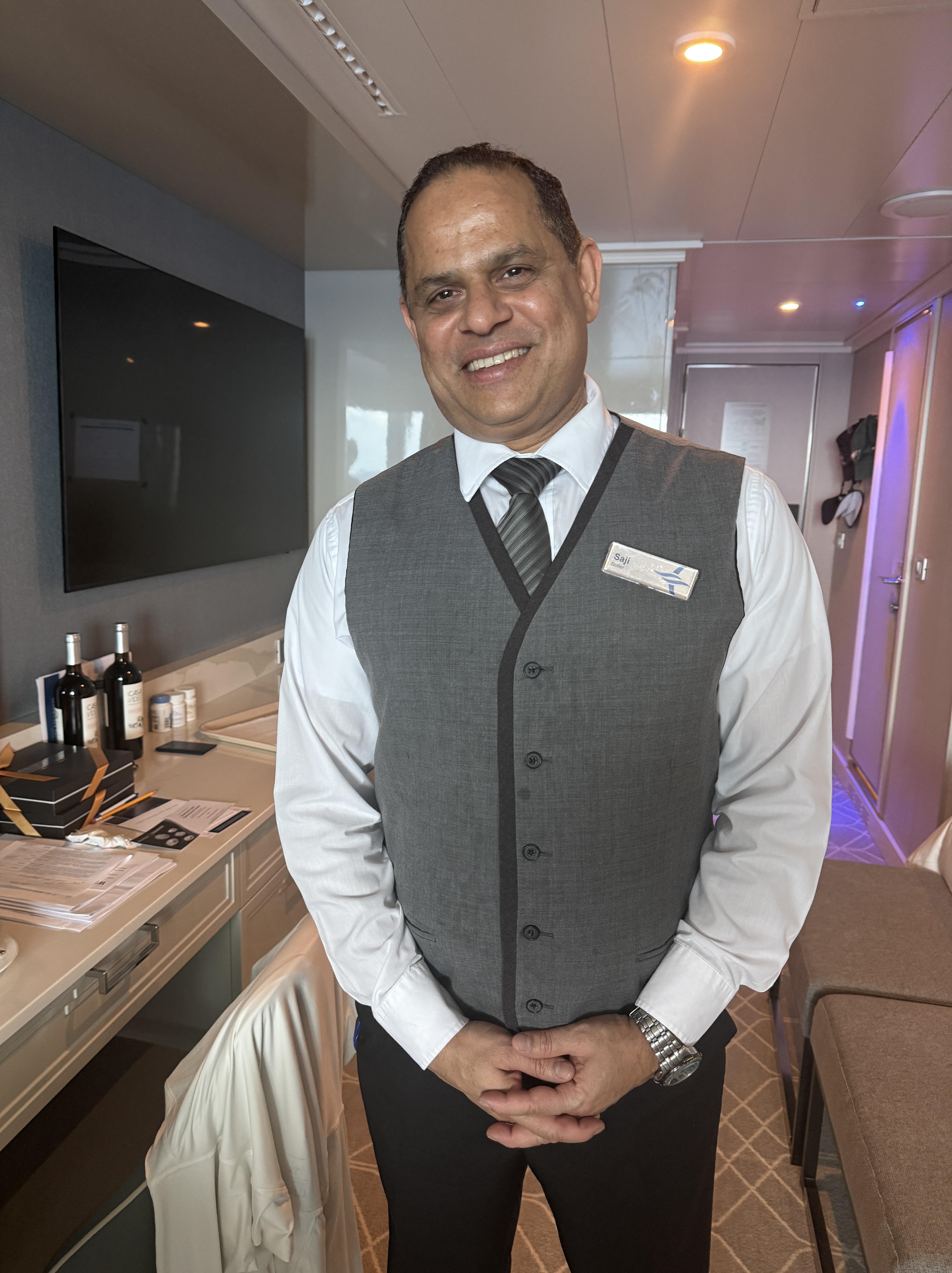 And, we have a wonderful butler, Saji. He keeps us supplied with our favorite drinks, snacks, etc.