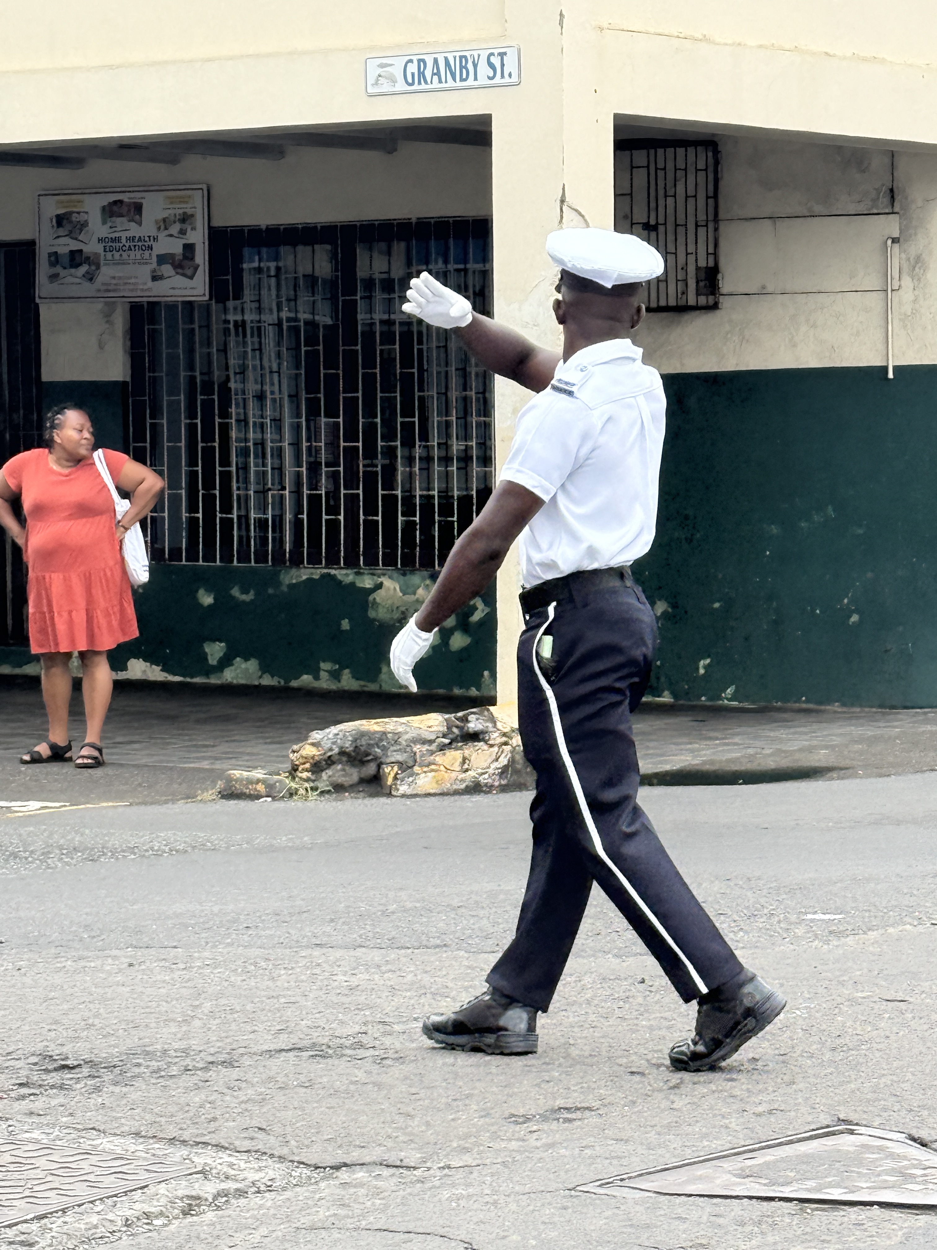 We opted to walk around the town. It is not as well developed as the islands we just visited and there are a lot of run down properties. The people are pleasant but the drivers can be aggressive. We didn’t see any traffic lights or stop signs and you have to be very careful when trying to cross streets. This was one of the few street signs we saw! On this intersection, we saw this very entertaining officer directing traffic.