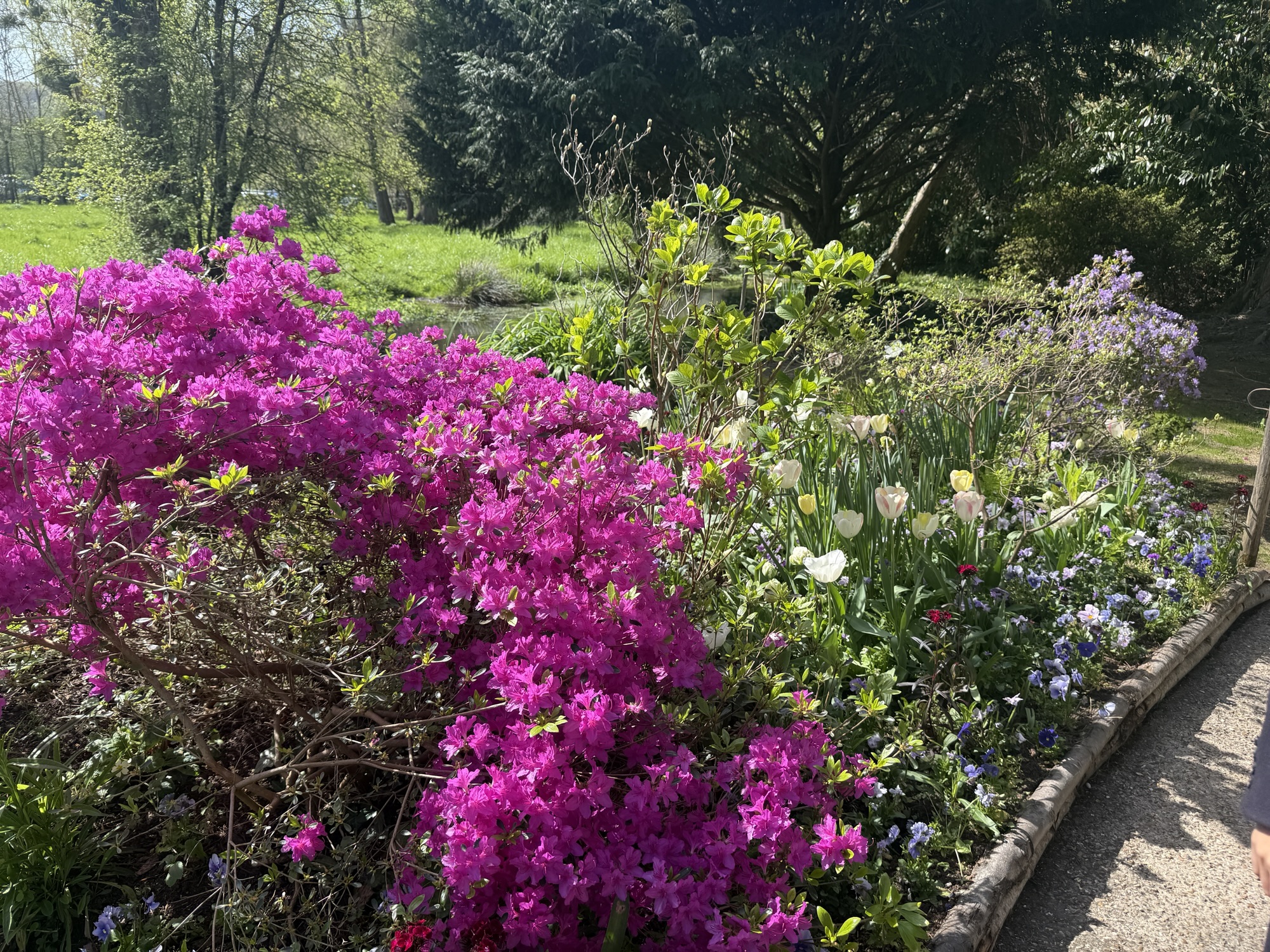 The tulips, rhododendron, azaleas, hyacinths, pansies and other spring flowers were in full bloom. There is something wonderful to see here in summer when the roses and wisteria are in bloom but today was just beautiful.