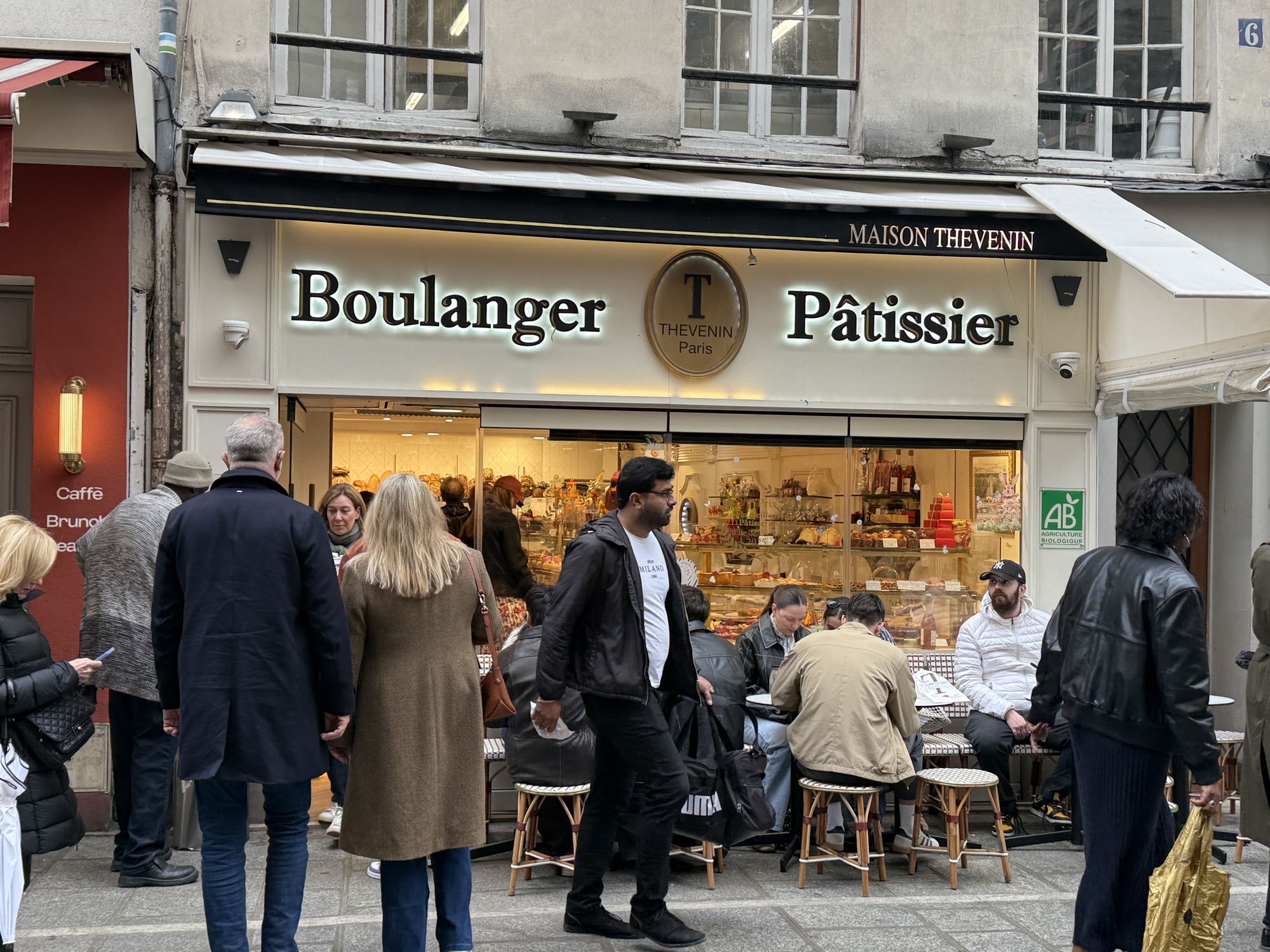 Apartments are very expensive in Paris so most people go out for their coffee and pastries since they do not have much room and rarely have dining space. The cafes have tables facing out so customers can people watch.