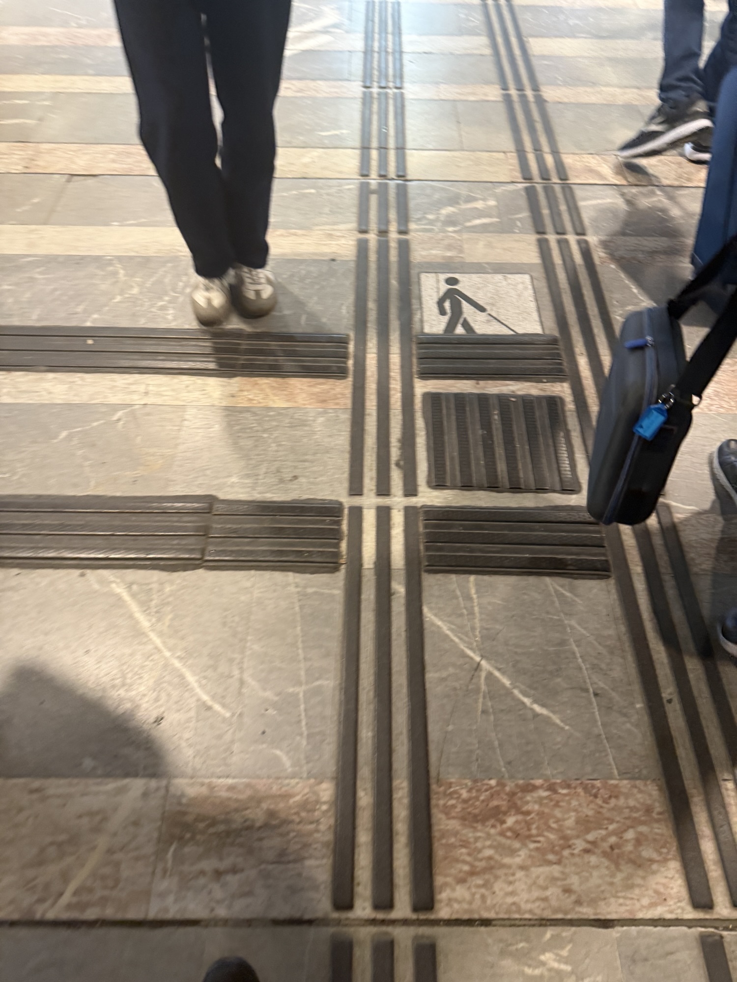 They have these kind of trails with raised borders for blind people to be able to navigate the station.