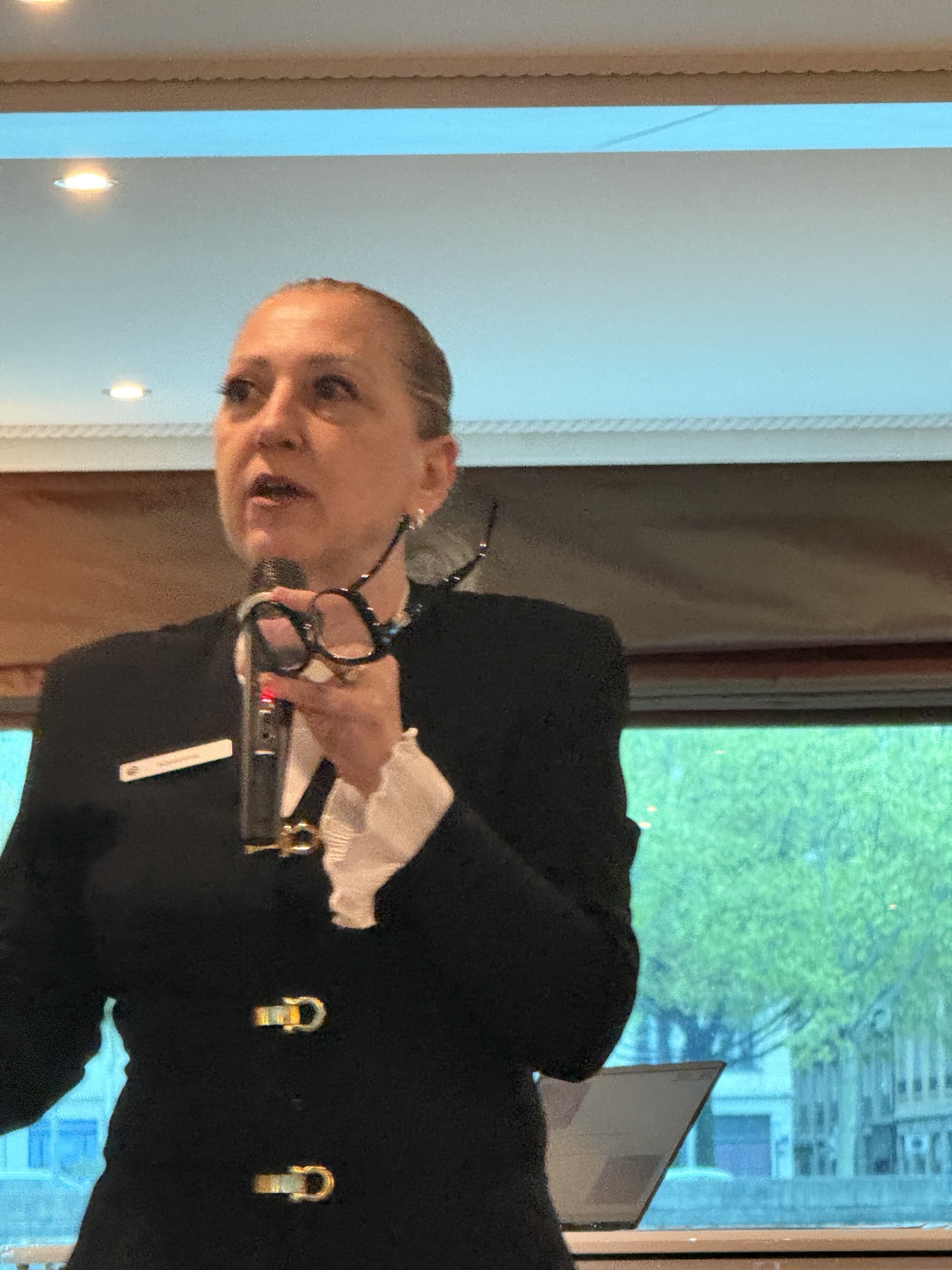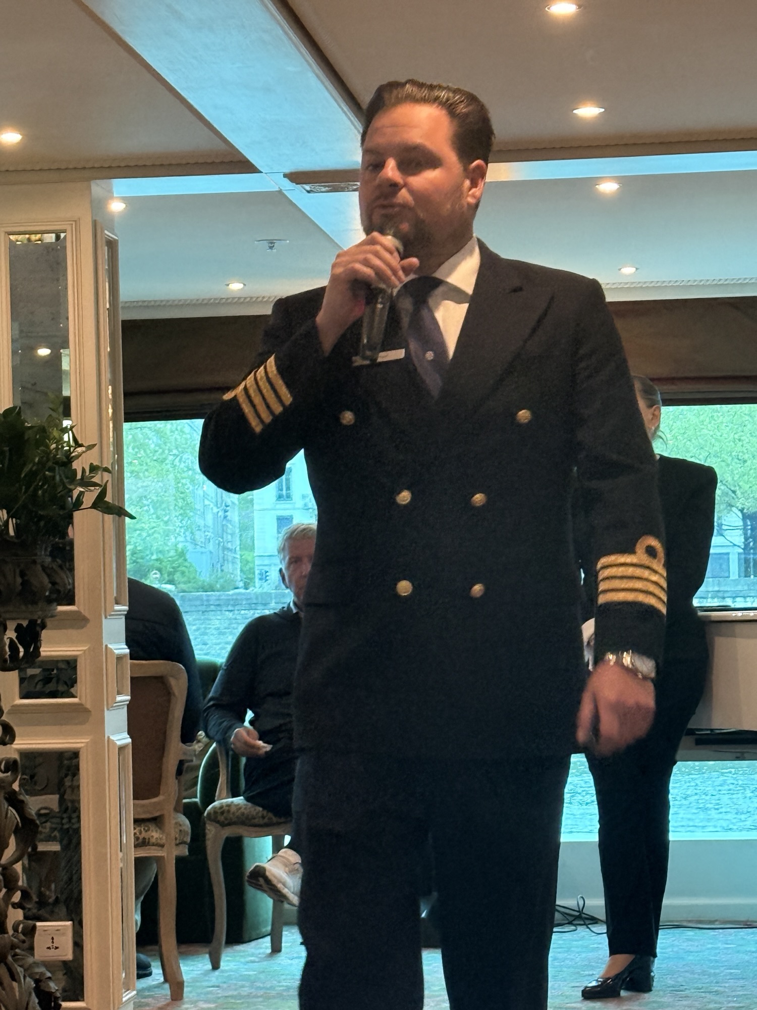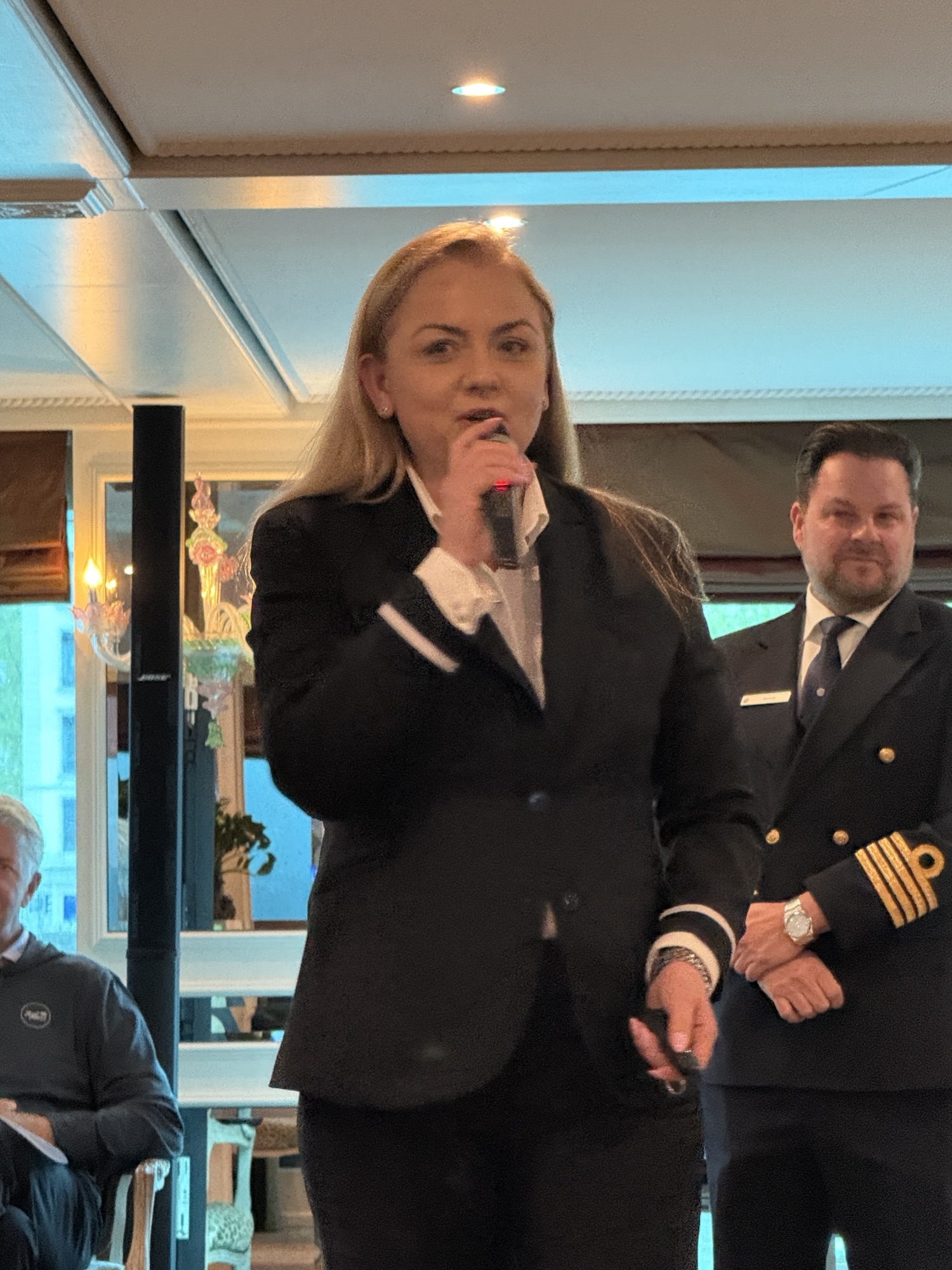 Before dinner, we had a drink in the bar and were then introduced to our general manager, Silvia, our cruise manager, Kassima and several of the bar staff. Kassima and Silvia were proud to say how many of the senior staff are women! The engineer, head sommelier, head housekeeper and head chef are all women. We will meet the rest of the staff tomorrow.