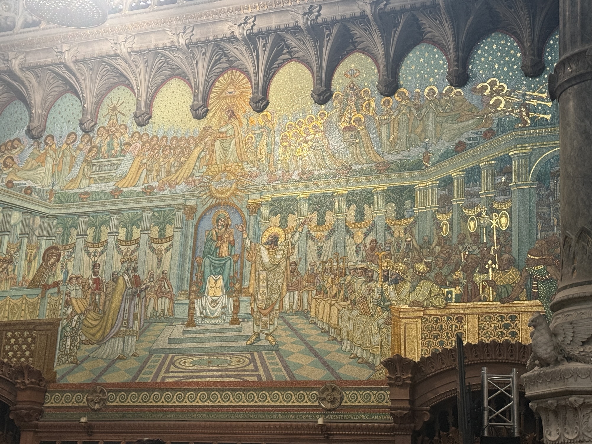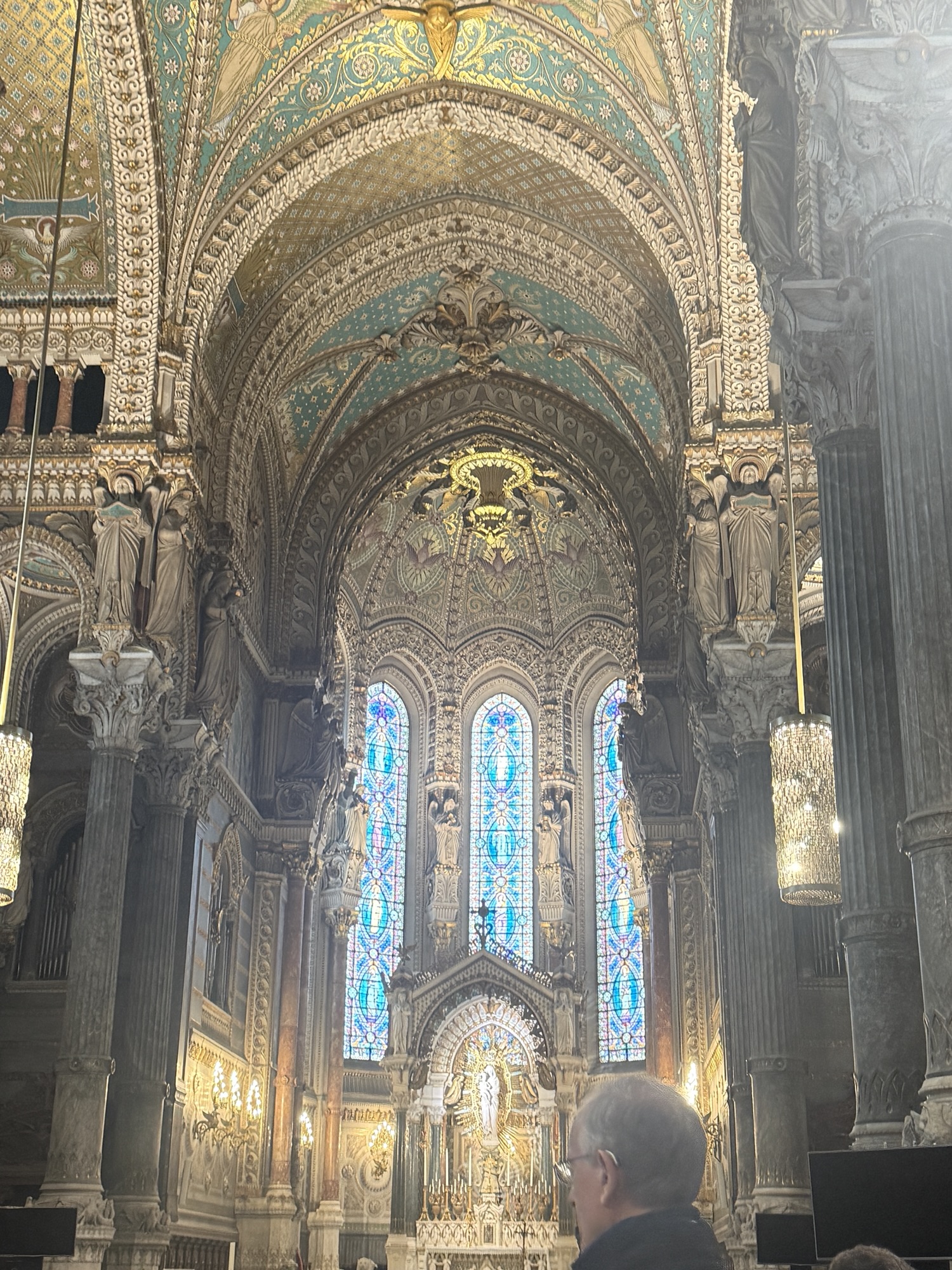 We visited the Notre-Dame de Fourviere Basilica which was built with private funds between 1872 and 1896. The inside is really amazing because of the mosaic murals that cover the walls. We sat for a while for Emilie to describe them. Then we had a bit of free time to wander in and around the church.